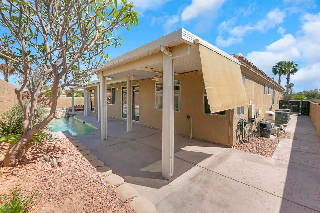 Now $50,000 Less -- and the kind of opportunity you don't see anymore.This home comes with a truly rare advantage in today's market: an assumable 2.75% VA loan with an approximate $300,000 balance--and you don't need to be a veteran. The seller is releasing their entitlement, giving a qualified buyer the chance to step into an ultra-low interest rate that simply doesn't exist anymore. In a world of high monthly payments, this alone is a game-changer.Tucked inside the gated Desert Collection in North Indio, this home feels instantly welcoming. With 2,273 sq ft, 3 bedrooms, and 3 full bathrooms, including two private suites, the layout is ideal for hosting guests, multi-generational living, or simply having space to breathe. The primary suite is your personal retreat--complete with dual vanities, a soaking tub, walk-in shower, and a generous walk-in closet. The kitchen is made for gathering, featuring granite countertops, warm wood cabinetry, and a breakfast bar where mornings naturally linger a little longer.Out back is where desert living truly shines. A private pool and spa, a covered patio for outdoor dining, and glowing sunset skies set the scene whether you're entertaining friends or enjoying a quiet evening at home. Located in a fast-growing North Indio neighborhood with low HOA fees, no Mello-Roos, and easy access to I-10, shopping, and schools, this home blends comfort, value, and opportunity in a way that's hard to find.This isn't just a house--it's smart living, smart financing, and a place you'll love coming home to. Schedule your private tour before someone else locks in this rare advantage.