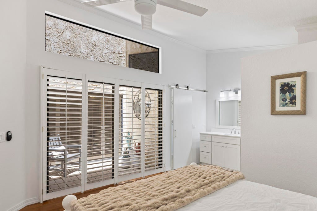 Price Improvement!Set along the 12th fairway with views of the 13th tee and nearby mountains, this turnkey, fully furnished home offers an easy, comfortable lifestyle in a peaceful desert setting. The open layout invites relaxed living and entertaining, with an updated kitchen featuring a new gas cooktop, double-drawer dishwasher, and finishes that blend style with practicality. The great room flows effortlessly outside, and motorized shades offer simple control of light and privacy. With three bedrooms, including two ensuite, the floor plan offers both space and flexibility. The upstairs suite includes a private entertainment area, ideal for guests. All three bathrooms have been remodeled with a clean, modern aesthetic. A neutral palette creates a calm, welcoming atmosphere throughout. Enjoy morning coffee or sunset views from the patio overlooking the fairway. A 4-person golf cart is included for convenient access to the clubhouse, pools, fitness center, and courts for tennis and pickleball. With an attached garage and tasteful updates throughout, this home is move-in ready and designed to be enjoyed from the start whether full-time or as a weekend retreat.