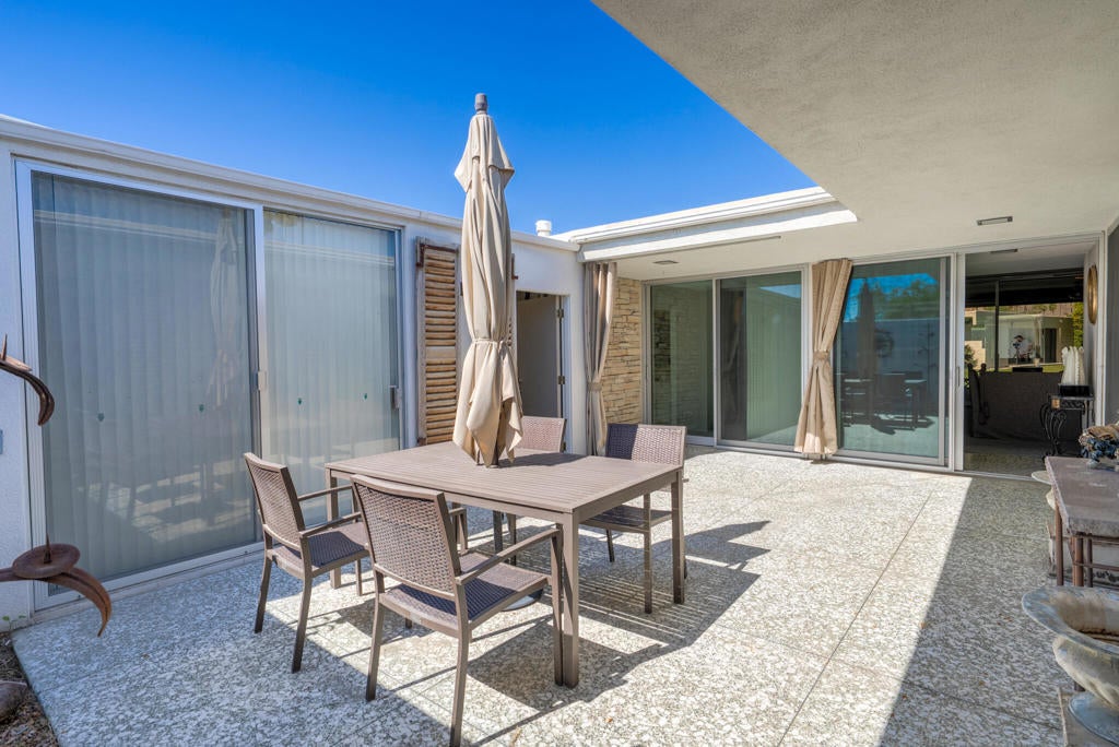 This 2 Bedroom 2 bath home is just a short stroll away, the historic William Cody-designed clubhouse offers an unmatched social and recreational experience. A coveted location within this exclusive, gated golf community. This home offers the best of desert living, combining the elegance of mid-century architecture with the allure of a premier golf and country club lifestyle. The Seven Lakes Golf & Country Club community also known as the 'Gem of the Desert' where in 1968 President Eisenhower sank his only hole-in-one on the 13th hole of the Ted Robinson designed golf course. Community amenities include: 24-hour guard at gate, 15 pools/spas all heated at season, pickleball court, onsite HOA and sales office, electric car charging stations and famous William Cody designed clubhouse with restaurant/bar.