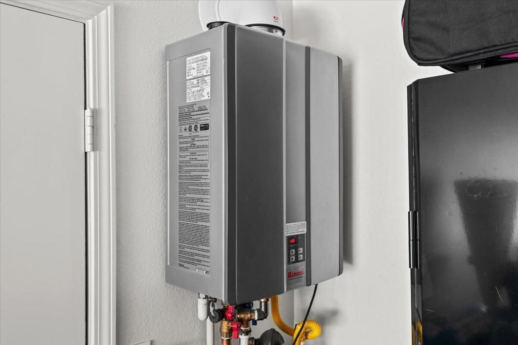 - AppliancesDishwasher, Disposal, Gas Oven, Gas Range, Microwave, Convection Oven, Electric Water Heater, Self Cleaning Oven, Tankless Water Heater, Water To Refrigerator