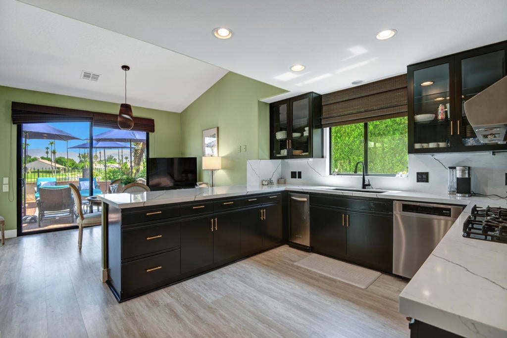 Stunning Lakefront Property with South Facing Mountain Views, Private pool & spa with Multiple Outdoor Living Areas and Renovated Contemporary Interiors. Gated courtyard entrance leads to Entry through Double Glass Doors to an Open Great Room with Fireplace, Dining Room, Updated Flooring and Walls of Glass looking out to south lake and mountain views. Gourmet Kitchen has been renovated with custom cabinetry, quartz countertops and stainless Wolf and Subzero appliances. Social Kitchen with Counter Seating and a Morning Room with those great views. Primary Bedroom has Sliders to the View Terrace, Updated Spa Bathroom and Walk-in Closet. 2 Guest Bedrooms are extra large each with ensuite bath and patio area and provide great space for family and friends or as an optional office or den. Amazing Outdoor Living with Pool/Spa, BBQ, Multiple Terraces overlooking the lake and mountains providing room for outdoor living and dining room to entertain and enjoy the resort lifestyle at Mission Hills Country Club. Updated sound system and smart controls. Expansive walk-in closet in the primary suite, complete with premium built-ins and ample storage. One of the best golf villas with amazing outdoor living and views. 4-6 months is $6800/ month6+ months $6500/ month. Bonus- With a lease of 6 months or more, tenants may have the option to transfer the country club membership for an additional fee--perfect for those who want to enjoy exclusive amenities during their stay!Occupied currently thru April 15th 2025. Available the 2nd week of Coachella and Stagecoach and near the Westin pickup.