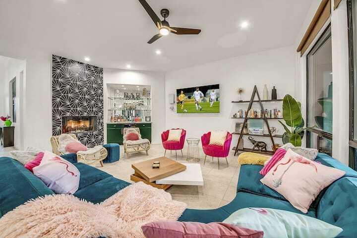 Investor Alert - Short-Term Rental Powerhouse! Located in the highly sought-after Montage at Santa Rosa--one of the few HOAs that allows and protects short-term rentals--this 6BD/4.5BA luxury estate (3,610 sq. ft.) is a proven income generator and comes fully furnished and turnkey. Known to Airbnb guests as ''Coachella Vista'', the property is walking distance to the world-famous Coachella & Stagecoach festival grounds, giving it unmatched rental demand.The flexible floor plan includes an attached casita with ensuite bath (a guest favorite) and the ability to convert the enormous eat-in kitchen into a 7th bedroom to maximize your guests. Outdoors, the resort-style yard is built for entertainment with a huge pool and spa, putting green, fire pit lounge, outdoor bar with pass-through window, multiple dining areas, and endless games--ping pong, shuffleboard, foosball, Giant Connect 4, Jenga, and even a unique built-in Snookball table. Indoors, enjoy a game room, Peloton-equipped fitness area, PlayStation 5, and Smart TVs throughout.This property comfortably sleeps up to 23 guests, delivering exceptional rental rates and occupancy. Offered completely turnkey with all furnishings, decor, and amenities, investors can start generating income immediately. With Montage's STR-friendly community guidelines, prime location, and established rental history, this property is a rare opportunity to own one of the valley's top-performing short-term rentals.