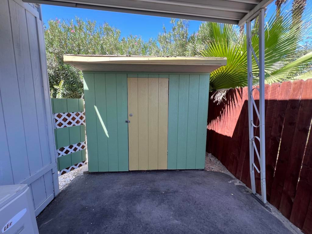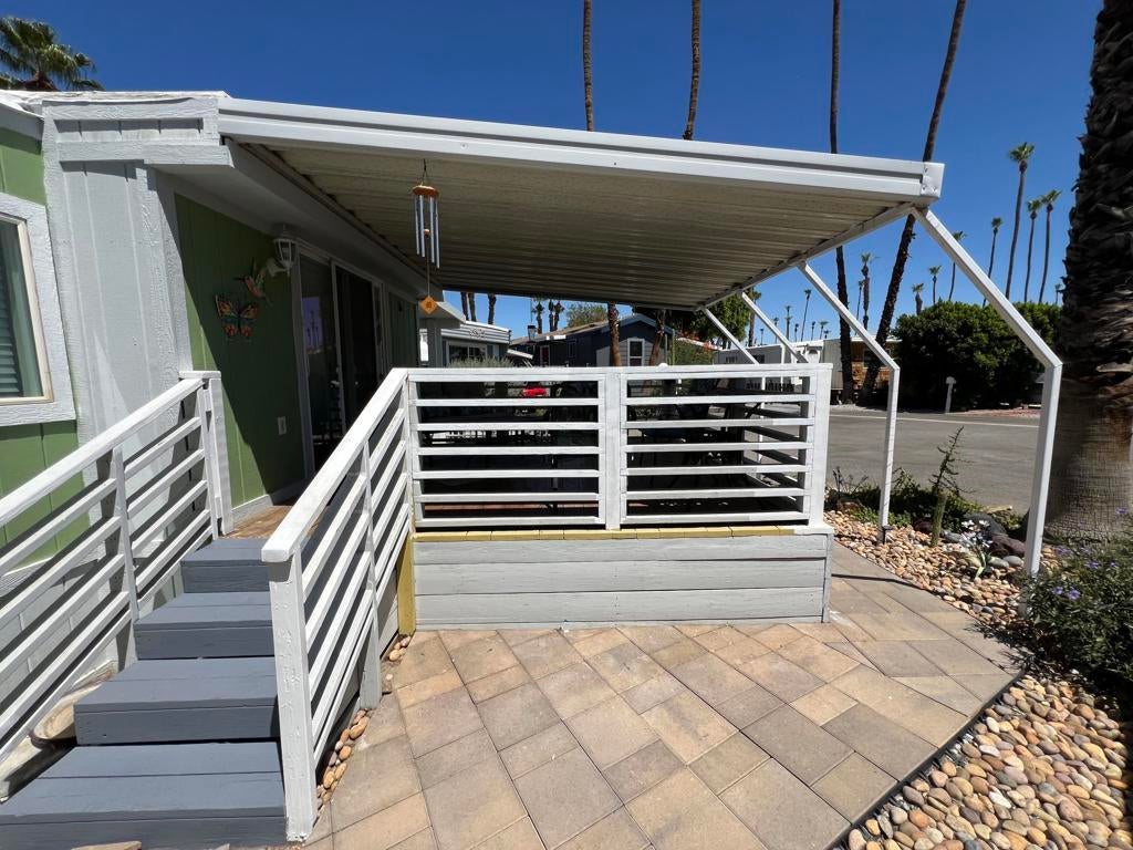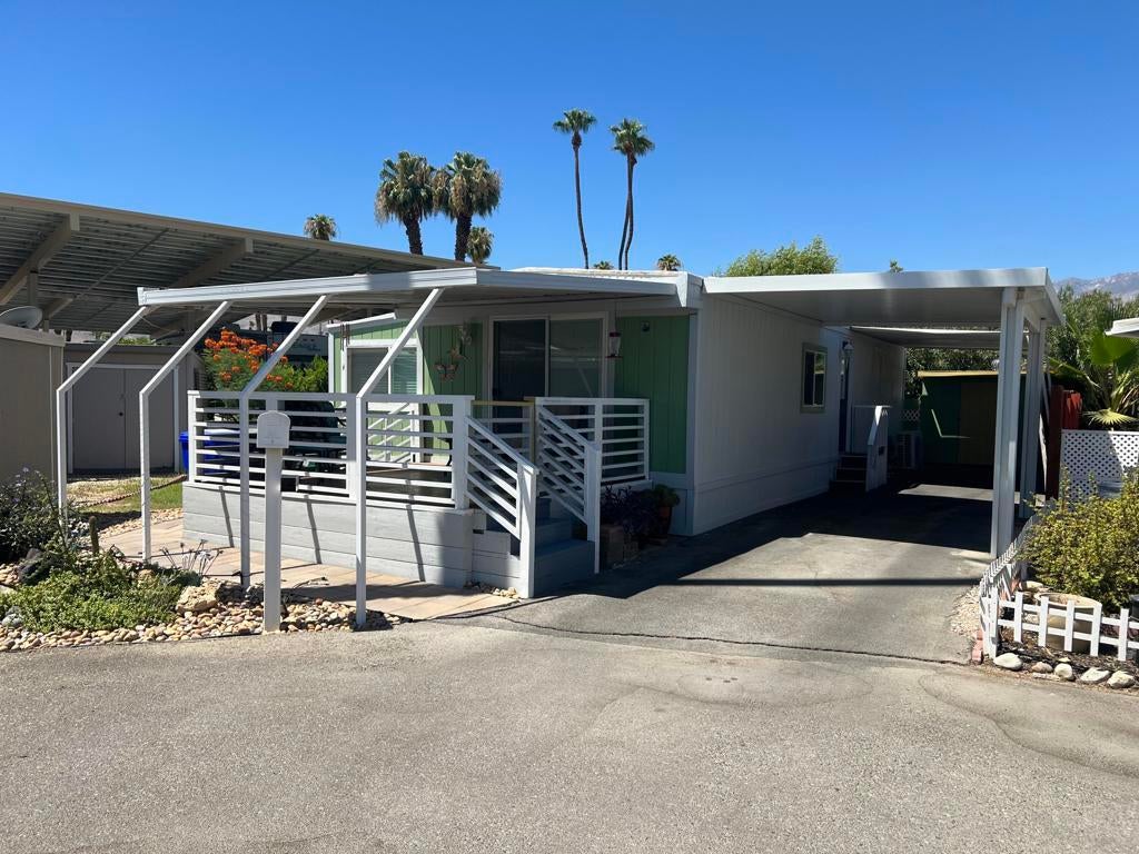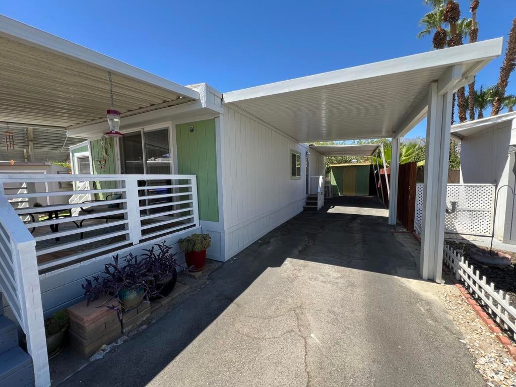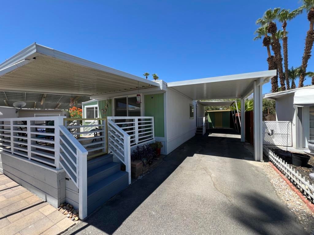 Welcome to resort-style living in the heart of Cathedral City's Royal Palms, a vibrant 55+ gated community. This beautifully updated home features newly installed double-pane windows and patio doors, modern appliances, and stylish upgrades throughout.Step inside to find a spacious primary bedroom, with room to create a second bedroom if desired, a fully remodeled bathroom, seller to install custom barn door in bathroom prior to closing. Gorgeous kitchen with stainless steel appliances included in the sale. A dedicated laundry room with washer and dryer offers added convenience.Enjoy the outdoors in your extra-large private backyard, beautifully landscaped with fruit trees and flowering plants that attract butterflies and hummingbirds. The property also includes a driveway and a versatile storage shed.Royal Palms offers a full suite of amenities: take a dip in the pool or spa, play a game of pickleball, bocce ball, shuffleboard, or miniature golf. Join bingo nights, practice on the putting green, or socialize at the clubhouse, billiards room, and BBQ area. The community also features RV parking and storage, dog parks, a library, and a packed calendar of social events.This move-in ready home is available unfurnished. Monthly space rent is $852; park approval is required.Don't miss this rare opportunity to embrace the carefree Palm Springs lifestyle in a truly special home!