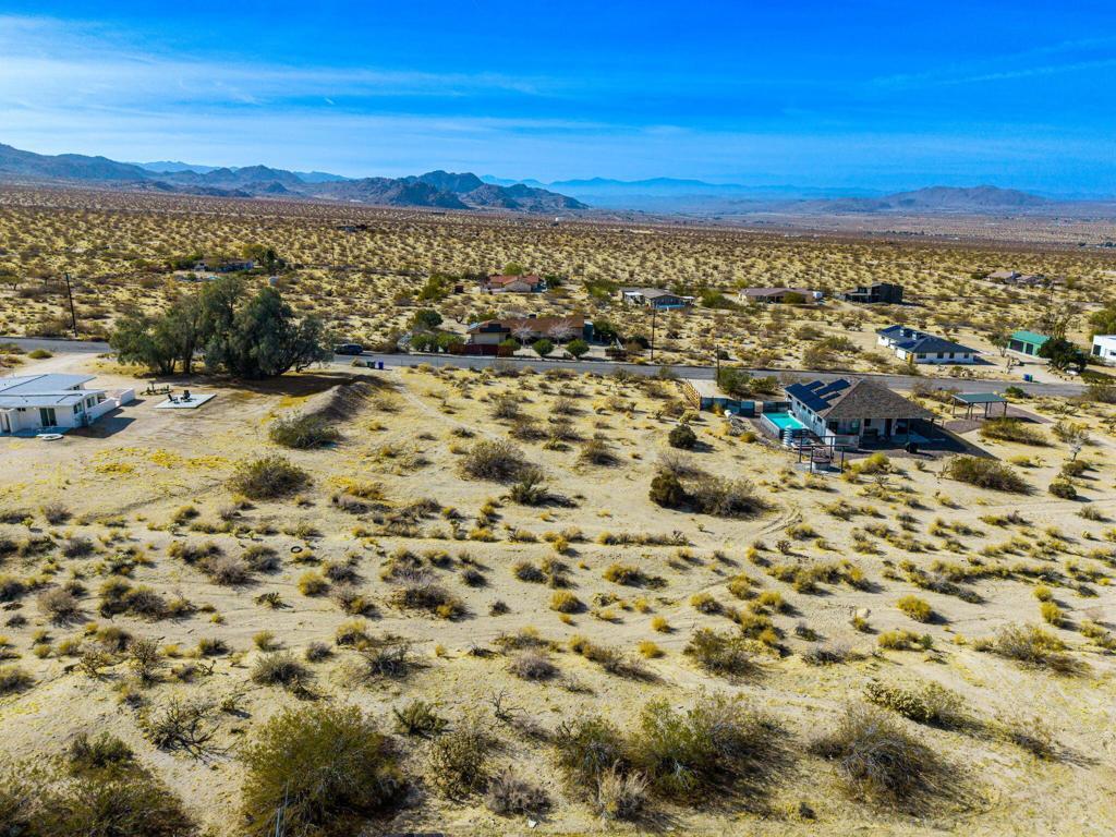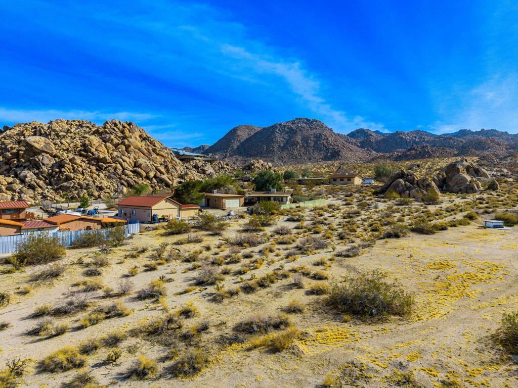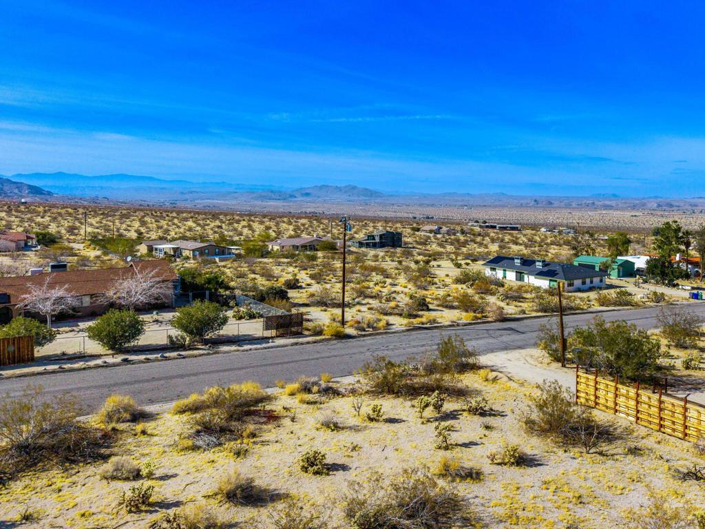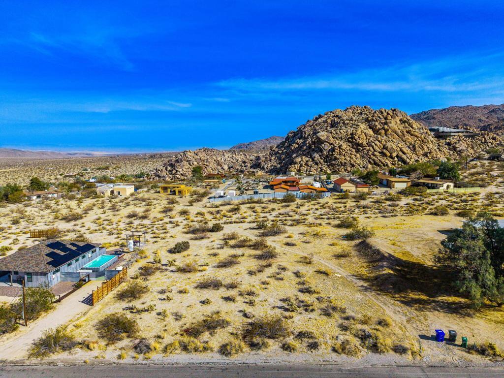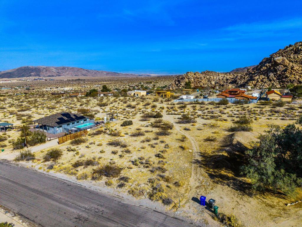 Discover an exceptional vacant lot for sale in the highly desirable Panorama Heights area of Joshua Tree. This flat parcel presents a unique opportunity to build your dream home or a lucrative short-term rental investment, set against a backdrop of stunning views and close proximity to natural attractions. Situated in Panorama Heights, the lot offers an elevated position with breathtaking vistas of the Joshua Tree Valley and direct views of Joshua Tree Park, known for its magnificent natural rock formations. The nearby Kellogg Doolittle house, just a street away, enhances the neighborhood's charm with its impressive mountain and rock views. With the national park boundary just 500 feet from the property line, you'll have easy access to explore the wonders of Joshua Tree National Park. This remarkable property comes with completed plans for a stunning 2,100 sq ft modern ranch house featuring three bedrooms and two bathrooms. The design includes a pool, spa, sunken fire pit, and a spacious outdoor patio with an outdoor kitchen, perfect for embracing the outdoor lifestyle Joshua Tree is famous for. The master suite offers a truly unique experience with a shower that incorporates the area's distinctive rock formations. The plans are ready for submission or can be customized to suit your preferences, allowing you to create a home tailored to your vision. Utility hookups, including water, electricity, septic system, and cable, will be necessary to fully develop the property.