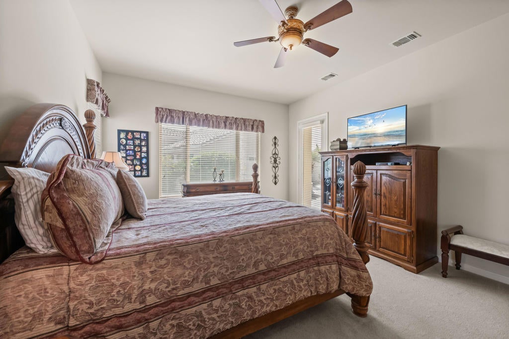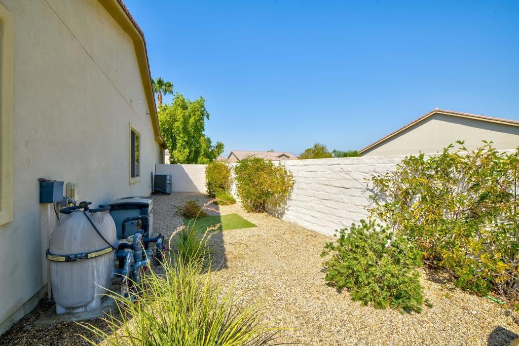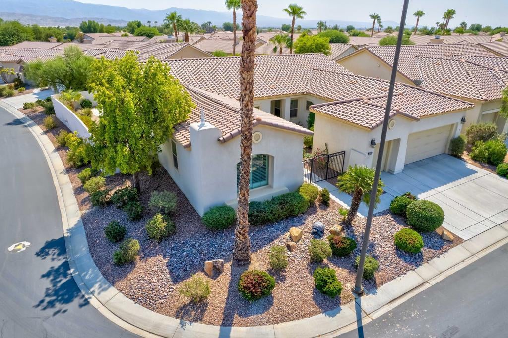 Welcome to this stunning San Miguel floor plan, beautifully finished and situated on a quiet corner privacy lot in the coveted gated community of Sun City Shadow Hills. This gem features a private pool, spa with waterfall feature, and built-in BBQ island and serving bar -- the perfect setting for year-round desert living. This 2,569 SF home with two private suites feels elegant and has been exceptionally maintained. Inside, elegant tile and plush carpet pair with custom window coverings, designer accent walls, and soaring ceilings with recessed lights and ceiling fans to create a warm, inviting atmosphere. The open layout offers multiple spaces for both entertaining and everyday living, including a formal dining area, spacious family room, and a versatile den with double door entry. This spacious kitchen has granite countertops, a center island, and two ovens perfect for entertaining. The primary suite offers patio access, dual vanities, an oval soaking tub, a glass-enclosed shower, and an oversized walk-in closet. The second suite features its own private entrance and full bath, providing comfort and privacy for guests. Additional features include a two-car plus golf cart garage, spacious laundry room with ample storage, and a newer A/C. Residents of Sun City Shadow Hills enjoy resort-style amenities including two clubhouses with fitness centers, pools, tennis, pickleball, bocce, golf courses, walking trails, on-site dining, and over 60 social clubs. With 24-hour gated security and a vibrant calendar of activities, it's the perfect place to stay active and connected year-round.