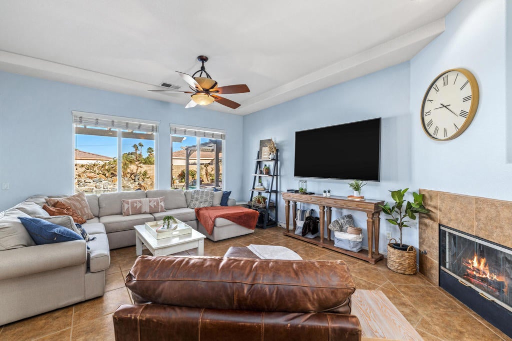Seasonal is 6500.00 Sept- Dec $4500.00 This beautiful 3 bedrooms Plus den pull out couch. 3 bath home is located heart of La Quinta. The house is turnkey with everything you need to vacation. Open floorpan w/tile through out. In the backyard it has an outdoor Fireplace w/gazebo. Gorgeous, large custom salt water pebble tec pool with waterfalls is the centerpiece, flanked by a generous sized BBQ island, gazebo and gas fireplace! All surrounded by the backdrop of stunning mountain views! Gated community close to shopping, golf and award winning Dining! Just pack your bags and book your stay.