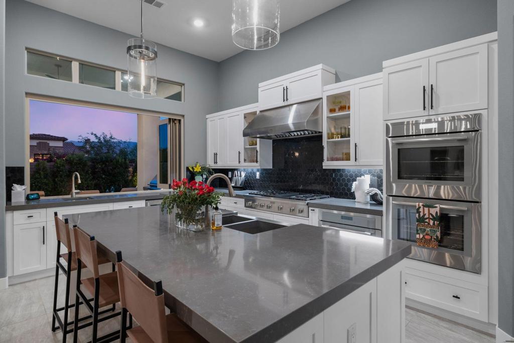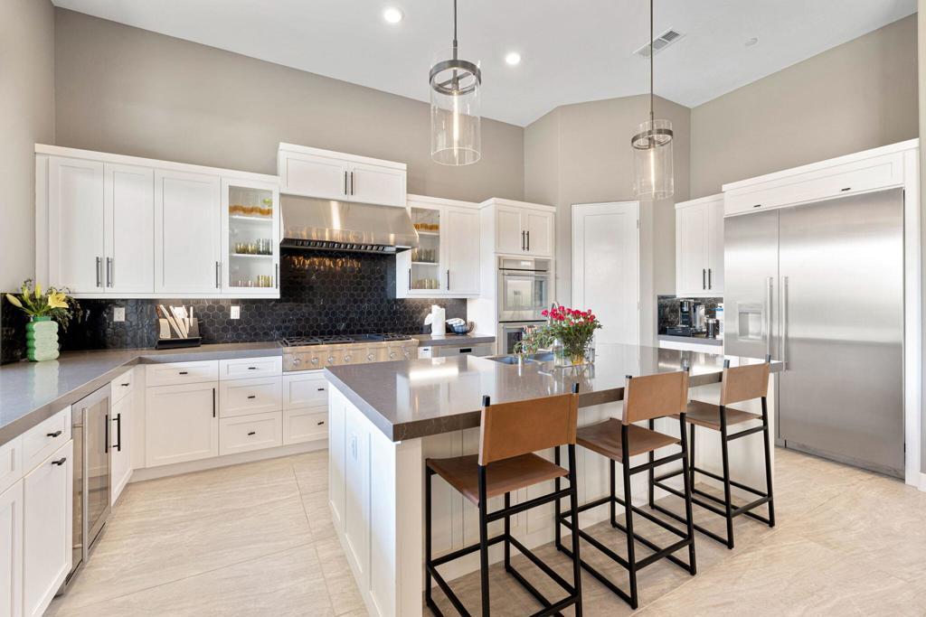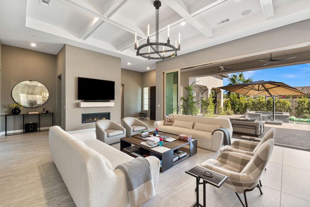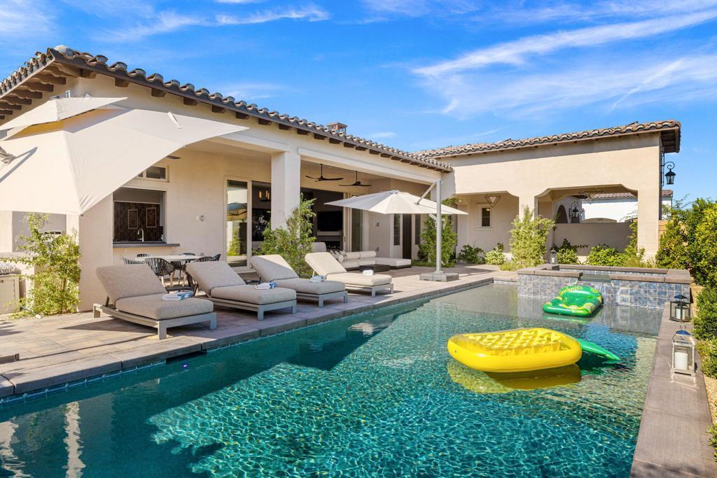 One of the most high-end homes in the prestigious community of Griffin Ranch in South La Quinta. This exquisite 4 bedroom, 4.5 bathroom property offers the perfect balance of elegance, comfort, and that indoor/outdoor desert lifestyle - the ideal escape for your next vacation. Surrounded by majestic views of the Santa Rosa Mountains, this custom home features thoughtful designer finishes and is highly upgraded and well-appointed. The massive sliding glass door opens up to the backyard creating the perfect indoor-outdoor experience overlooking the custom pool & spa. This home has all the amenities for your next family getaway! Spread out in style in this sprawling designer estate at Griffin Ranch. Custom Pool & Spa with BBQ and Firepit. 4 bedrooms with all en-suite bathrooms. The highly upgraded Chef's kitchen is stocked with everything you need. Perfect luxurious vacation home for the entire family! You will have access to the fabulous community amenities, which include: 8 pickleball courts, 2 tennis courts, pool/spa, 9 hole putting & chipping green, a world-class fitness center, and Events at the 10,000 sq. ft clubhouse, often including a band, dancing, and catering. Perfect location surrounded by prestigious communities PGA West, Hideaway, and Madison Club. Close to dining, golf courses, hiking, shopping, and entertainment.