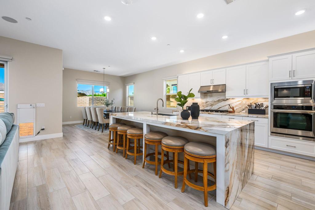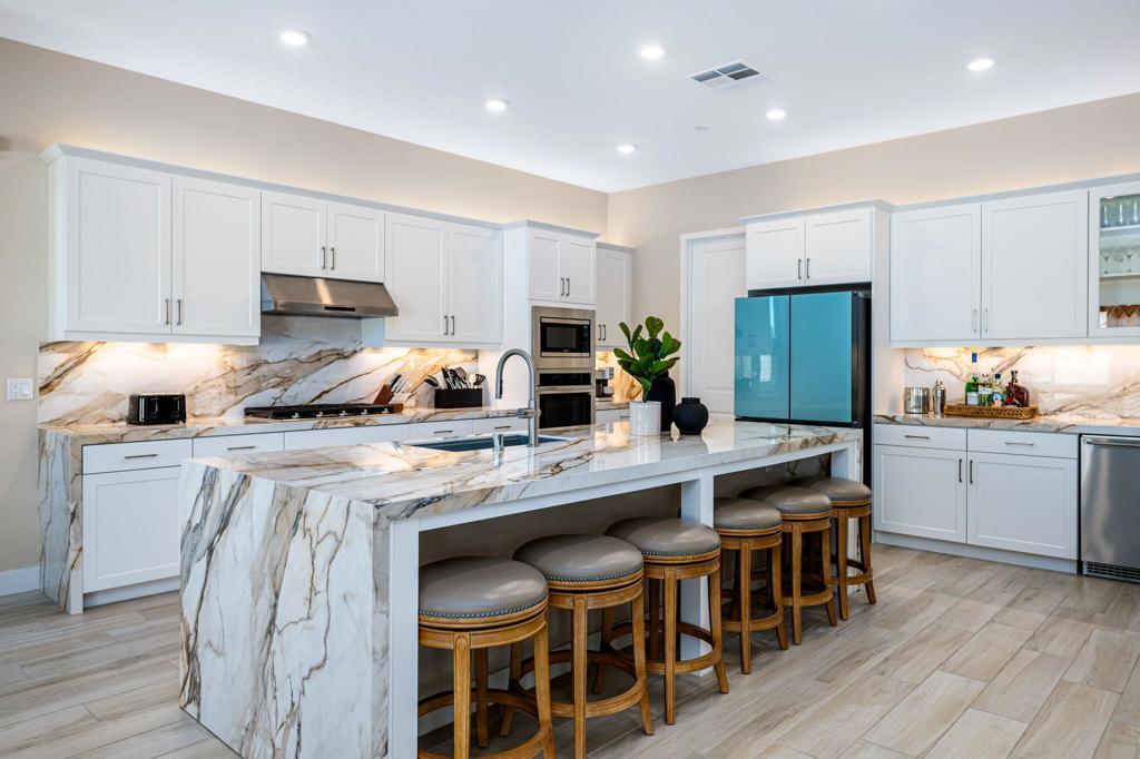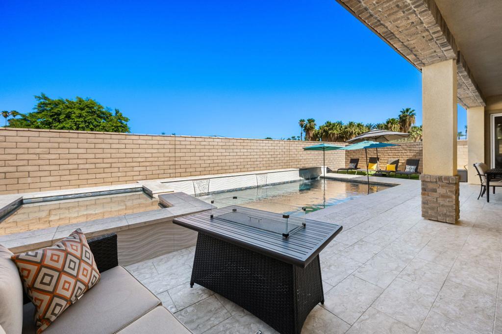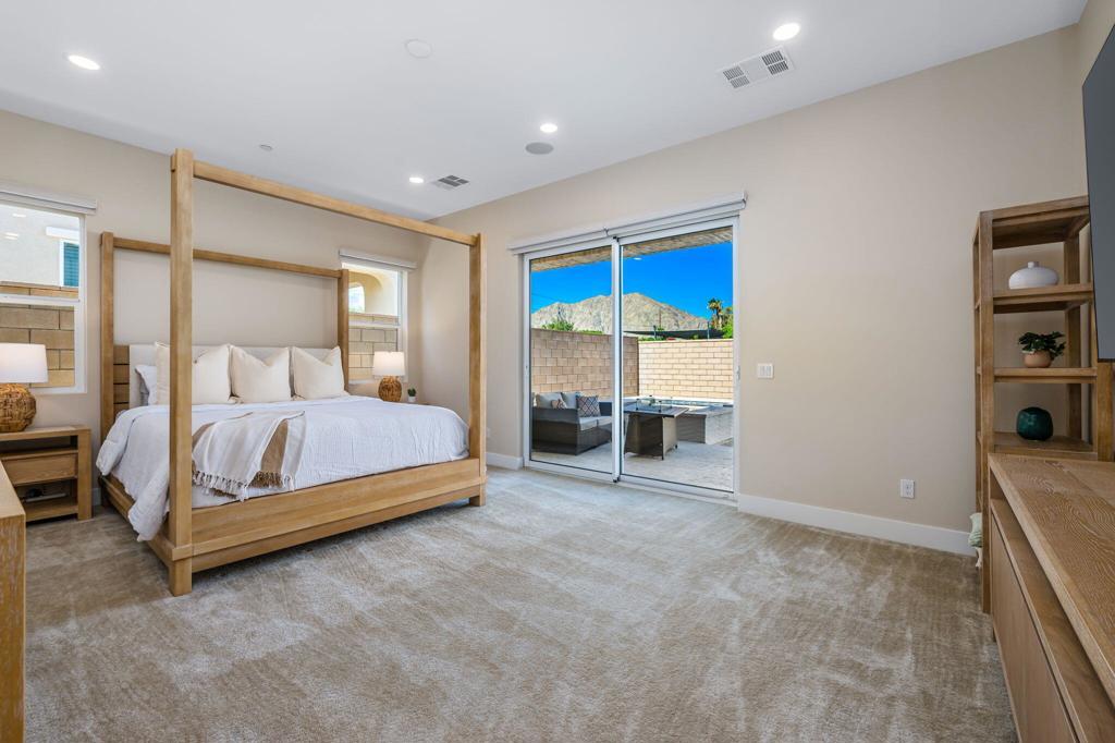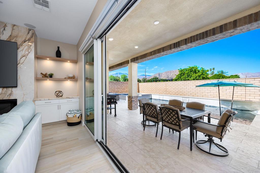 Experience luxury desert living in this stunning new construction lease, located in the exclusive gated community of Diamante by Crestwood in La Quinta. Offering five bedrooms and five bathrooms, including a private-entry casita with its own kitchenette and living room, this turnkey, fully furnished residence is designed for both sophistication and comfort. Every detail has been thoughtfully considered, from designer-selected hardware and lighting to upgraded tile, custom finishes, and premium furnishings, ensuring a truly move-in ready experience. The open-concept great room serves as the home's central gathering space, featuring an electric fireplace and a dramatic glass wall that slides open to connect effortlessly with the backyard. The chef's kitchen features a large expansive central island, perfect for entertaining and seating six, along with adjacent dining space that accommodates eight. A large wet bar with wine refrigerator and commercial-grade ice maker adds an additional touch of elegance. Ceiling fans throughout the home enhance comfort year-round. The primary suite is a serene retreat with direct patio access and a spa-inspired ensuite boasting a walk-in shower with three shower heads, dual vanities, and ample closet space. Guest bedrooms are generously proportioned and well-appointed, providing privacy and flexibility. Outdoors, a private courtyard entry sets the tone for the resort-caliber amenities beyond. The backyard features a heated pool and spa, fire pit, covered patio, and low-maintenance desert landscaping--pool and landscape maintenance are included for worry-free enjoyment. A three-car garage offers room for a golf cart and all your toys. Located just moments from Old Town La Quinta, world-class golf, polo fields, the Indian Wells Tennis Garden, and an array of restaurants, resorts, and shopping, this home offers the perfect blend of privacy, luxury, and accessibility. With easy access to major freeways and the airport, it's a prime choice for seasonal or long-term stays in the Coachella Valley.