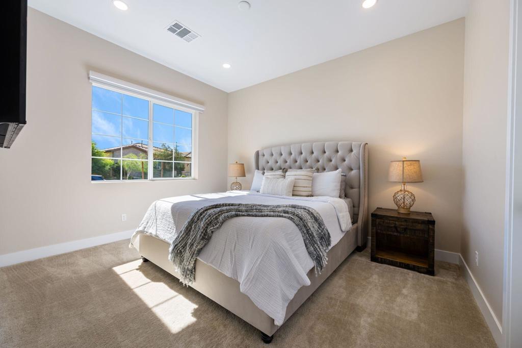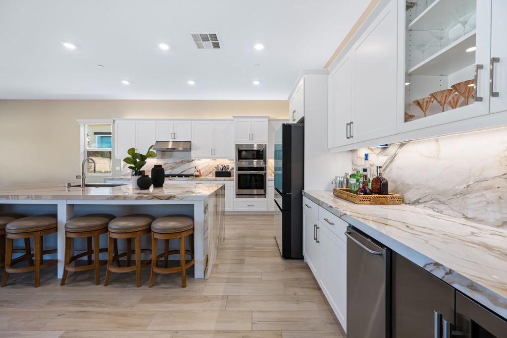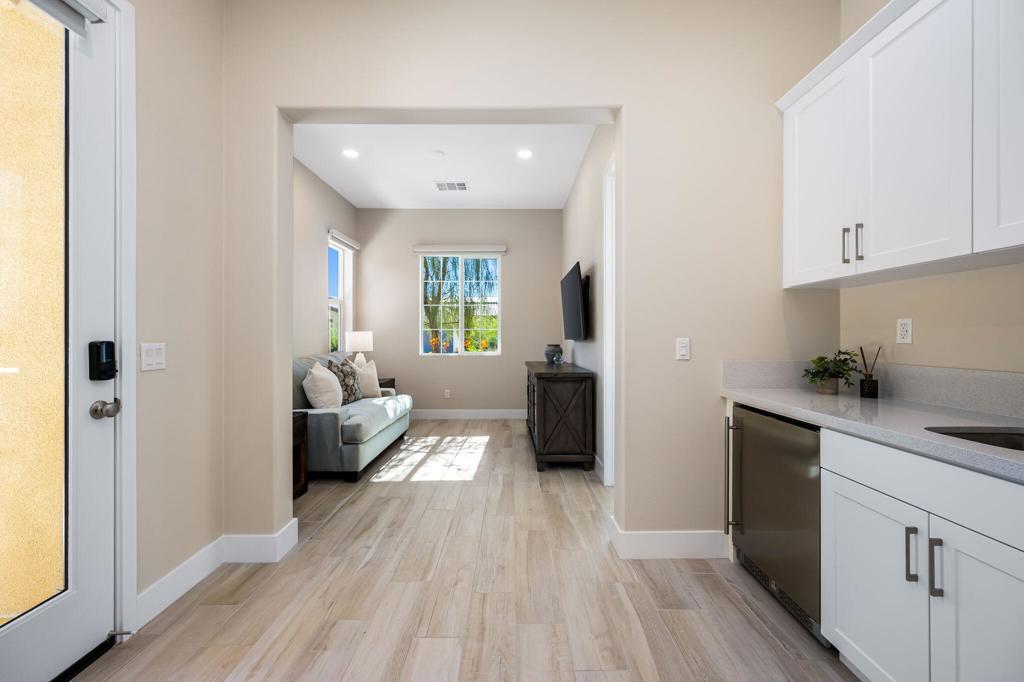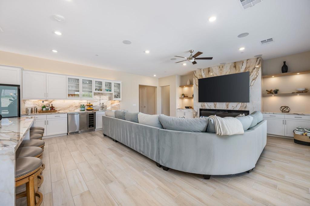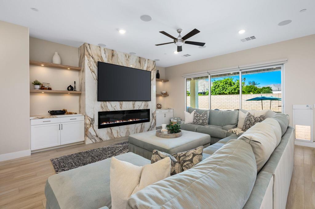 Experience luxury desert living in this stunning new construction lease, located in the exclusive gated community of Diamante by Crestwood in La Quinta. Offering five bedrooms and five bathrooms, including a private-entry casita with its own kitchenette and living room, this turnkey, fully furnished residence is designed for both sophistication and comfort. Every detail has been thoughtfully considered, from designer-selected hardware and lighting to upgraded tile, custom finishes, and premium furnishings, ensuring a truly move-in ready experience. The open-concept great room serves as the home's central gathering space, featuring an electric fireplace and a dramatic glass wall that slides open to connect effortlessly with the backyard. The chef's kitchen features a large expansive central island, perfect for entertaining and seating six, along with adjacent dining space that accommodates eight. A large wet bar with wine refrigerator and commercial-grade ice maker adds an additional touch of elegance. Ceiling fans throughout the home enhance comfort year-round. The primary suite is a serene retreat with direct patio access and a spa-inspired ensuite boasting a walk-in shower with three shower heads, dual vanities, and ample closet space. Guest bedrooms are generously proportioned and well-appointed, providing privacy and flexibility. Outdoors, a private courtyard entry sets the tone for the resort-caliber amenities beyond. The backyard features a heated pool and spa, fire pit, covered patio, and low-maintenance desert landscaping--pool and landscape maintenance are included for worry-free enjoyment. A three-car garage offers room for a golf cart and all your toys. Located just moments from Old Town La Quinta, world-class golf, polo fields, the Indian Wells Tennis Garden, and an array of restaurants, resorts, and shopping, this home offers the perfect blend of privacy, luxury, and accessibility. With easy access to major freeways and the airport, it's a prime choice for seasonal or long-term stays in the Coachella Valley.