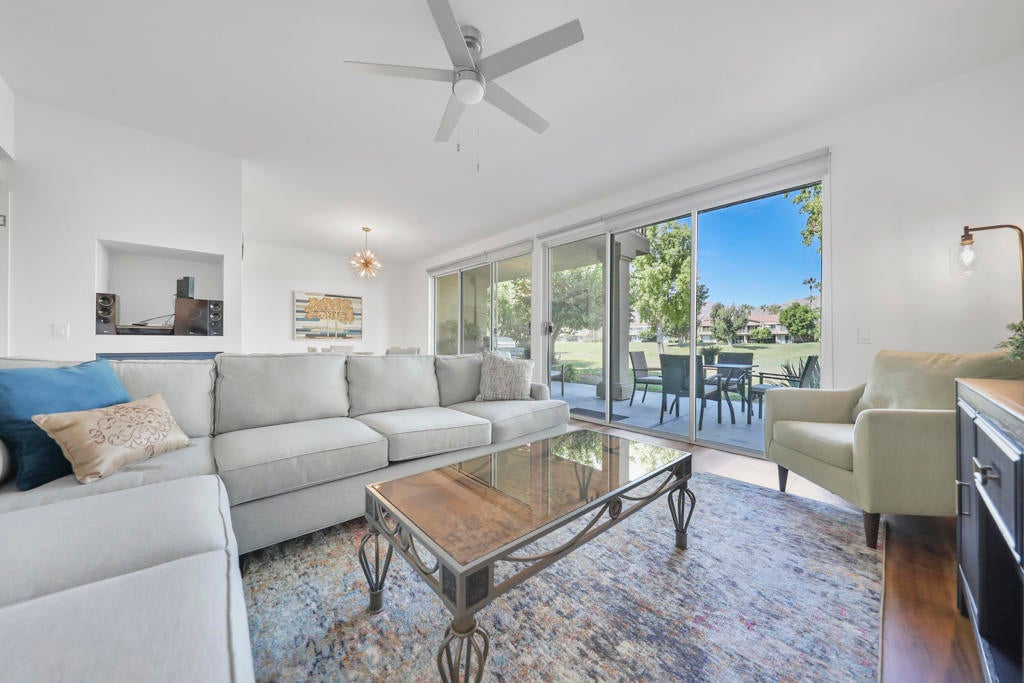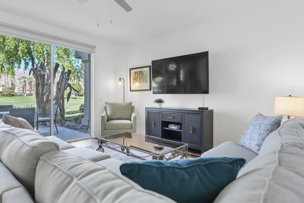 Step into this beautifully remodeled residence, perfectly situated on the 5th hole of the world-famous Jack Nicklaus course.. With panoramic views of double fairways, dramatic mountain backdrops, and lush rolling greens, this home delivers an unrivaled resort experience from every vantage point.Designed with luxury and comfort in mind, the home offers two primary suites, each with its own full ensuite. The gourmet kitchen seamlessly flows to the outdoor covered patio area--ideal for al fresco dining and entertaining beneath the desert skies. The open-concept living and dining areas showcase the full wall of sliders, providing abundant natural light, creating an atmosphere of elegance and ease.Additional features include a private laundry room and a two-car garage with generous storage, blending practicality with sophistication.As part of the prestigious PGA West community, residents enjoy access to sparkling pools and spas just steps from the home. Golf enthusiasts will appreciate the option to play three semi-public courses or elevate their membership to enjoy all six legendary PGA West courses, each designed by the game's greatest architects.This is more than a home--it is a luxury lifestyle, offering the perfect balance of refinement, relaxation, and recreation.