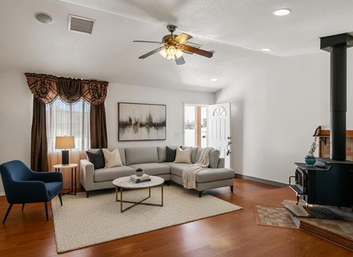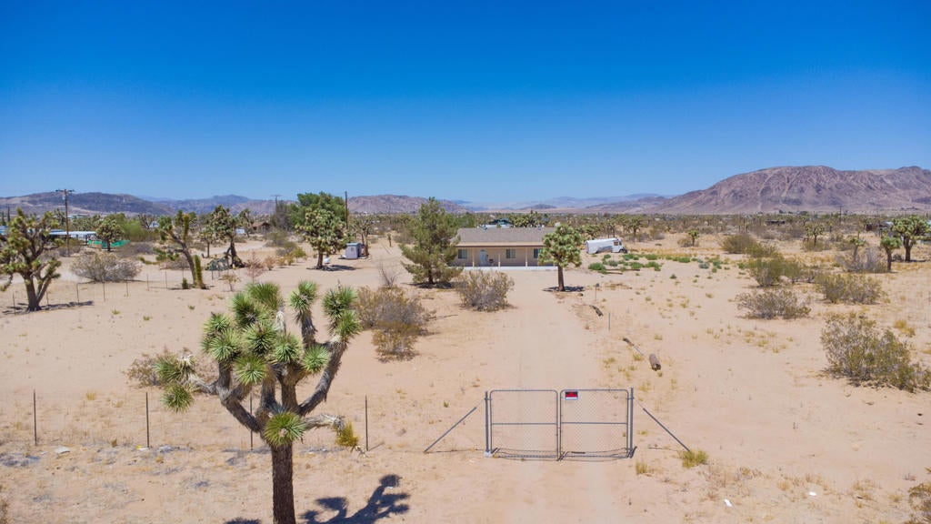 Welcome to this beautifully maintained home, built in 2010, offering 3 bedrooms and 2 bathrooms (both are showers) including a master bedroom. Nestled on a generous 4.8-acre lot, this property combines comfort, space, and stunning desert views. (Corner Lot)Enjoy cozy evenings by the fireplace in the living room, or take in the breathtaking surroundings from your own backyard. The open layout and natural light create a warm, inviting atmosphere throughout the home.This property features central AC and heating, an attached 2-car garage, and RV hookups with 220V power. Utilities are extended throughout the property, and there's a separate fenced area that's perfect for pets or any furry family members. The home is move-in ready and offers the perfect blend of rural charm and modern convenience.Located in the heart of Landers, you're just minutes from the Landers Post Office, the world-famous Integratron, Giant Rock, and more. Whether you're looking for a full-time residence, vacation getaway, or investment opportunity -- this is a must-see! We have all the blueprints.