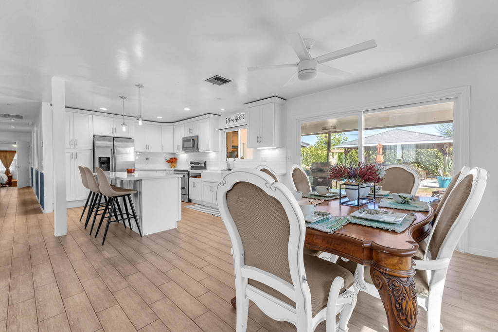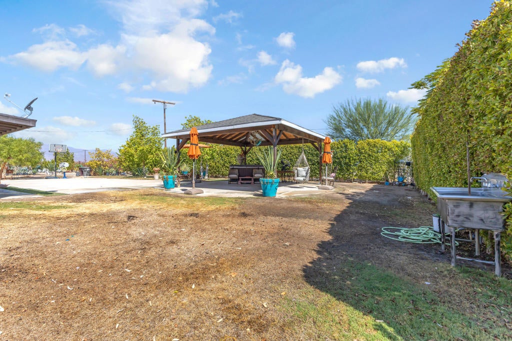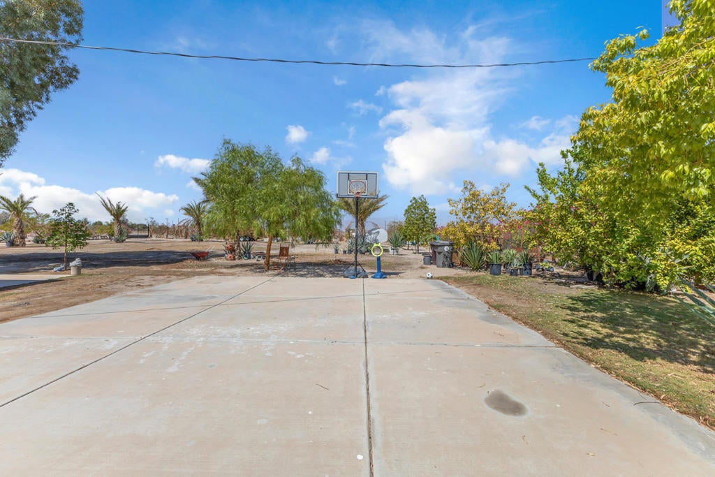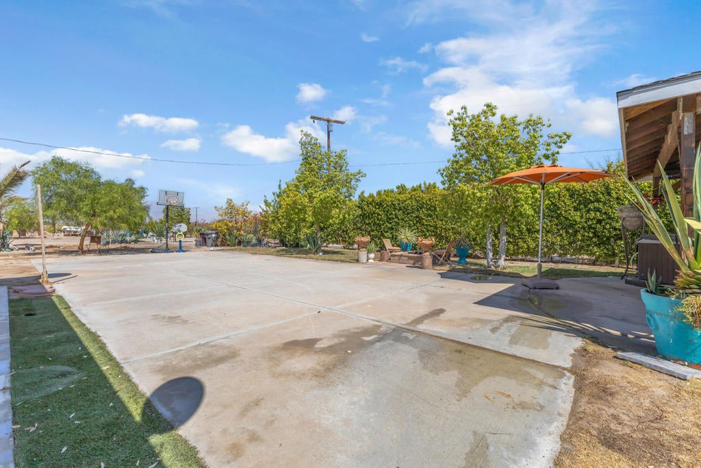 This 4-bedroom, 2-bath home sits on a large corner lot over 13,000 sq ft and includes the vacant 15,000 sq ft lot next door (APN 008-043-006) in the sale! That's over 28,000 sq ft of total space, all fenced together with palm trees and utilities already on the second lot! Perfect for extra parking, a workshop, or even future building.The home has a unique driveway that goes from one street to the other, making it easy to drive in and out, and there's lots of room to park inside the property.Inside, you'll find tile floors that look like wood, a cozy living room, and a kitchen with nice cabinets, quartz countertops, and a tile backsplash. The master bedroom and bathroom are both big, and the walk-in closet has lots of shelves for storage. The shower in the master bathroom is also large and tiled.Out back, there are two covered patio areas, a hot tub (above ground), and a fire pit. There's also a concrete pad that's great for a basketball hoop or other outdoor fun.Plenty of space, lots of potential, and move-in ready!
