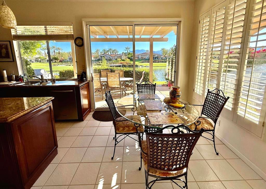 South Lake Views + Private Spa! CLUB Membership available to Buyer - no wait. This lakefront Acacia 4 condo has a covered patio with private spa, and expansive mountain and course views of #7 Grove. Offered Furnished per Inventory, this 3 bedroom/3.5 bathroom Indian Ridge CC condo is beautifully maintained! The Living room opens out to the patio and spa area, and is accented with crisp white shutters, built-ins, fireplace and wet bar. Fabulous views also from the kitchen and breakfast nook, which open to the patio with builtin BBQ, and features stainless appliances and island. The separate dining room is adjacent to the living room - ideal for ease of entertaining. Primary suite has a private patio area, bath with tub & shower, double vanities, and a generous walk in closet. Both guest bedrooms are en suite - the front guest suite is currently used as a den. The attached 2-car garage has direct access in to the house via the laundry room. Great location - just a few houses away from two of the many community pools & spas, and around the corner from ''Rover's Ridge'' dog park. HOA monthly dues include security, cable & internet, all gardening, exterior paint, roof maintenance, exterior water, exterior pest control and trash. Indian Ridge CC features two Arnold Palmer Signature golf courses, tennis/ pickleball facilities, a fitness center, a full-service spa, two restaurants, 38 community pools/spas & active social calendar. Come Join the Fun!