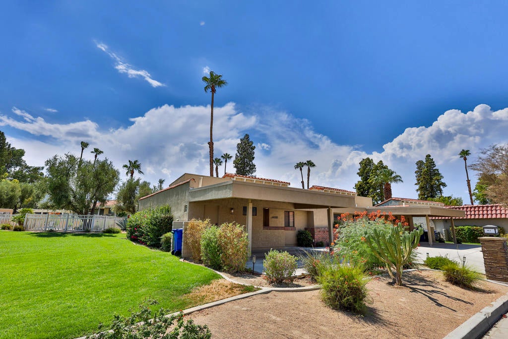Fully Renovated 1-Bedroom End Unit in Palm Desert Resort Country ClubLocated within the highly desirable Palm Desert Resort Country Club, this impeccably renovated 1-bedroom, 1-bathroom condo offers the ideal blend of comfort, style, and convenience. Featuring the sought-after Tradition floorplan, this single-level end unit delivers an efficient and spacious layout with stunning greenbelt and pool views.Step inside to discover a bright and open living and dining area, enhanced by high ceilings, large windows, and abundant natural light. The South facing patio seamlessly connects indoor and outdoor living, offering a peaceful retreat with beautifully manicured vistas.The completely redesigned kitchen boasts modern finishes, ample cabinetry, and a convenient breakfast bar -- perfect for everyday living or entertaining. The spacious primary suite includes direct patio access, a generously sized finished closet, and an elegant, step-free walk-in shower in the updated bathroom.Additional highlights include:Matching large-format tile flooring throughout. Attached covered carport. Quiet location on an interior circle and close proximity to the pools, spas, tennis, and pickleball courtsThis gated community offers 24-hour security, an 18-hole championship golf course, and a well-managed HOA that covers cable, internet, exterior maintenance, and landscaping.Whether you're looking for a full-time residence, seasonal escape, or investment property with strong rental potential, this home checks every box. Conveniently located near shopping, dining, and all major desert attractions.