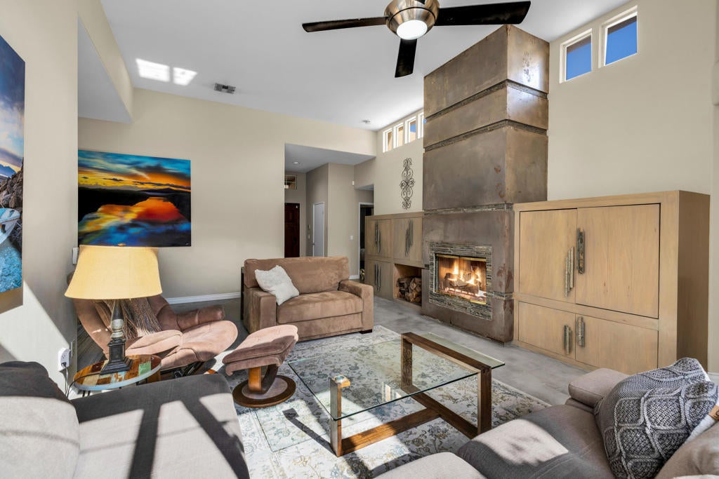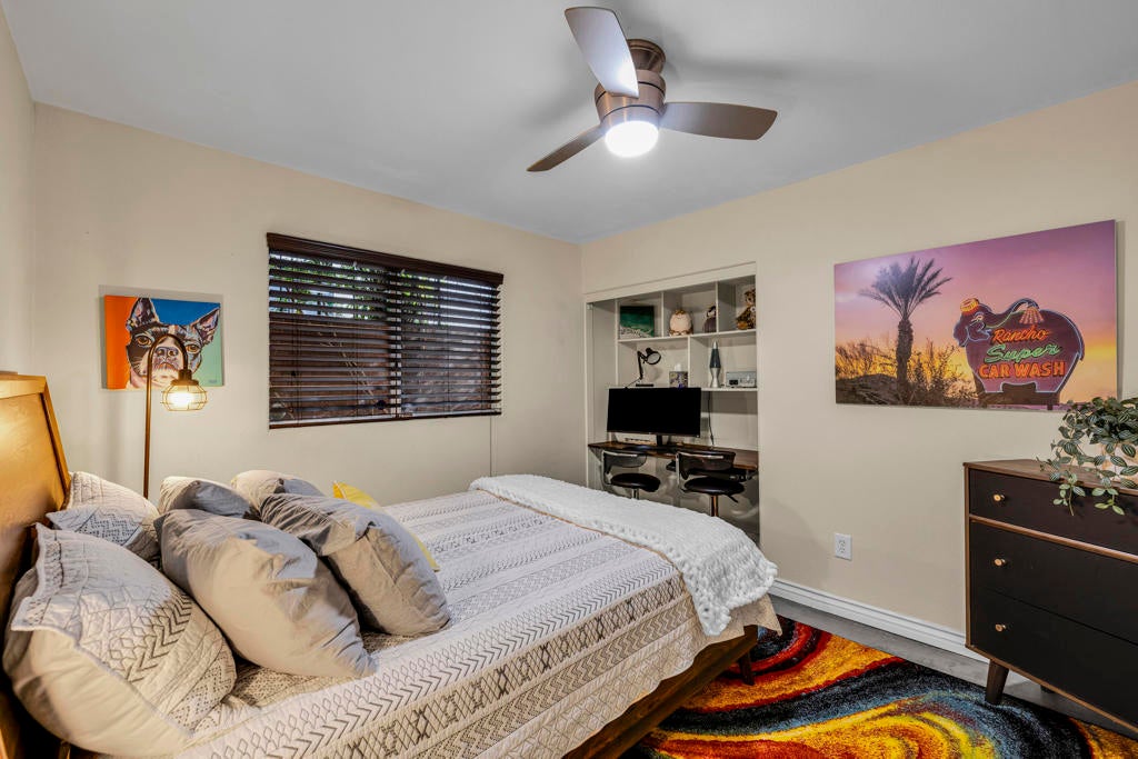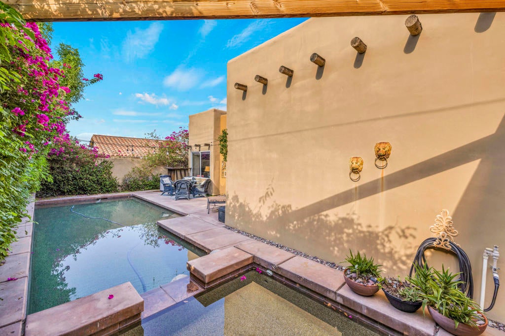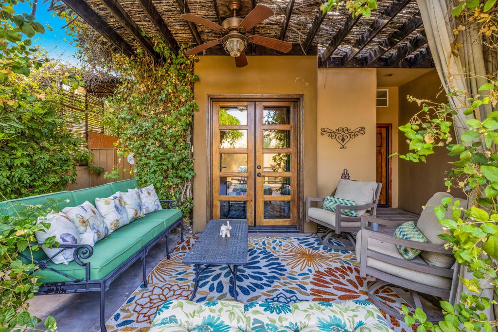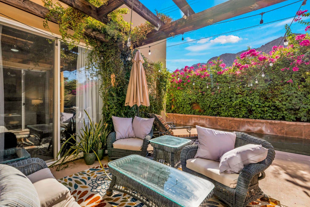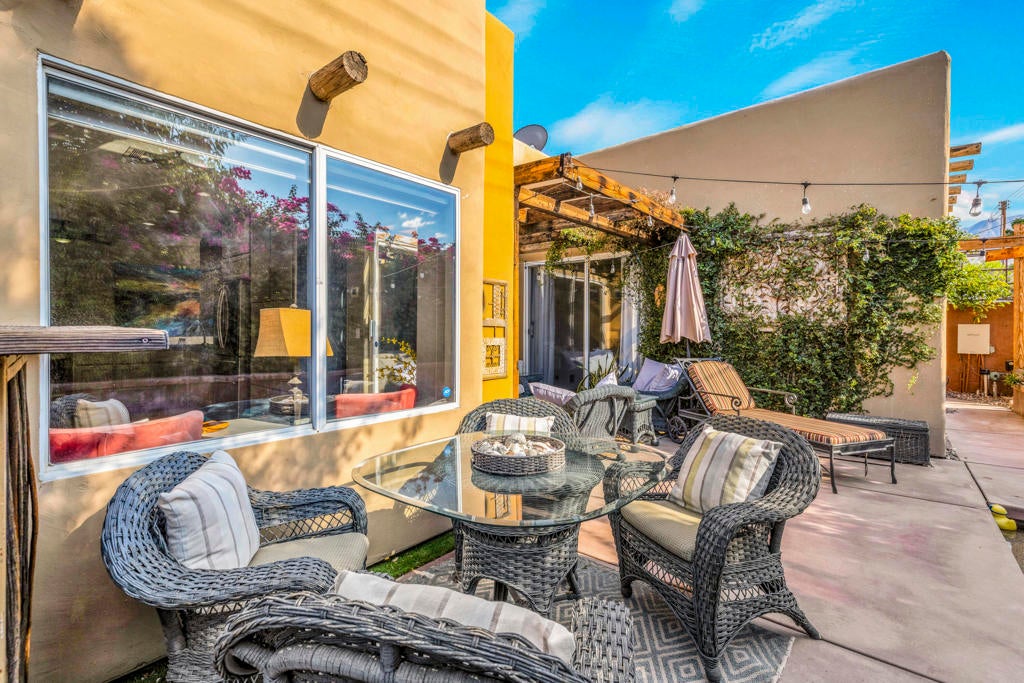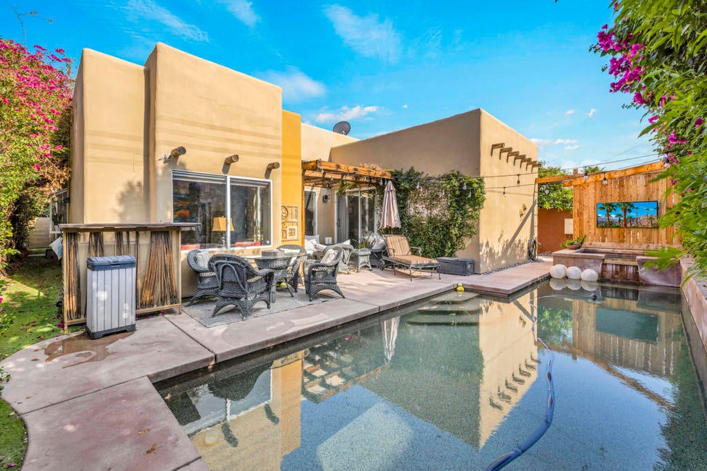 Welcome to your private desert retreat in sought-after La Quinta Cove! This Santa Fe-style home blends charm, character, and modern updates with breathtaking views of the Santa Rosa & San Jacinto Mountains. A gated front courtyard welcomes you with an outdoor kitchen/BBQ, firepit & a covered seating area - perfect for relaxing or entertaining while enjoying colorful sunrises in total privacy. Inside, the open living area features polished concrete floors, transom windows, custom built-ins, and a striking custom fireplace. The fully renovated kitchen offers quartz countertops, stainless steel appliances & a breakfast bar opening to the dining space. The backyard is a true resort escape with a covered sitting area & a sparkling pool/spa, framed by dramatic mountain vistas. Perfect as a primary home, vacation retreat, or investment, this property is located near hiking and biking trails, the shops & restaurants of Old Town La Quinta, the Empire Polo Club (Coachella & Stagecoach) & the Indian Wells Tennis Garden (BNP Paribas Open). A rare opportunity to own a stylish Santa Fe home in one of La Quinta's most desirable locations!
