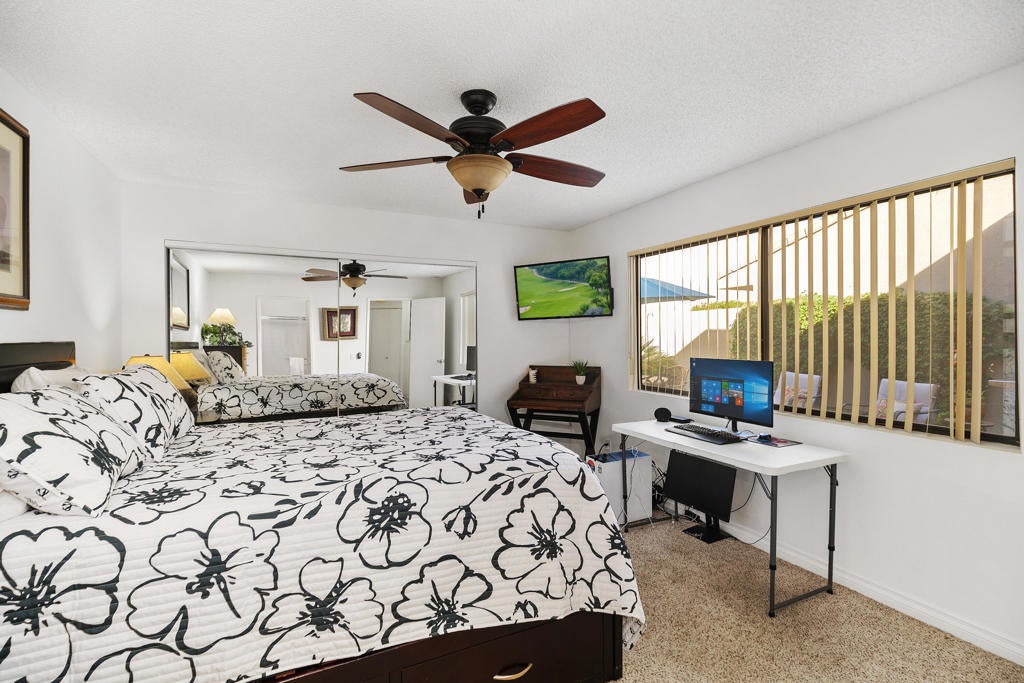 Newly renovated kitchen! This Turnkey FURNISHED Jacaranda model has SOUTH fairway VIEWS. Front courtyard patio for privacy and an extended rear patio complete with interlocking pavers and views of the 16th Fairway, Championship Course. This light airy condo has been freshly painted and has newer A/C and ducting. Also has a leak detection systems with emergency water shut-off. Move in ready for you or ready to rent. Palm Valley Country Club is a guard gated community with the look and feel of a vacation resort. The community's private golf club includes 2 Ted Robinson designed golf courses and 100,000 sq ft clubhouse with bar, lounge and restaurant, fitness center, spa, resort style pool area, proshops, practice facilities and 16 tennis courts. There are also 46 pools and spas. EXCELLENT primary, part-time or VACATION RENTAL property. Short term rentals are allowed in Palm Valley Country Club; ''The Fun Club for ALL ages.''