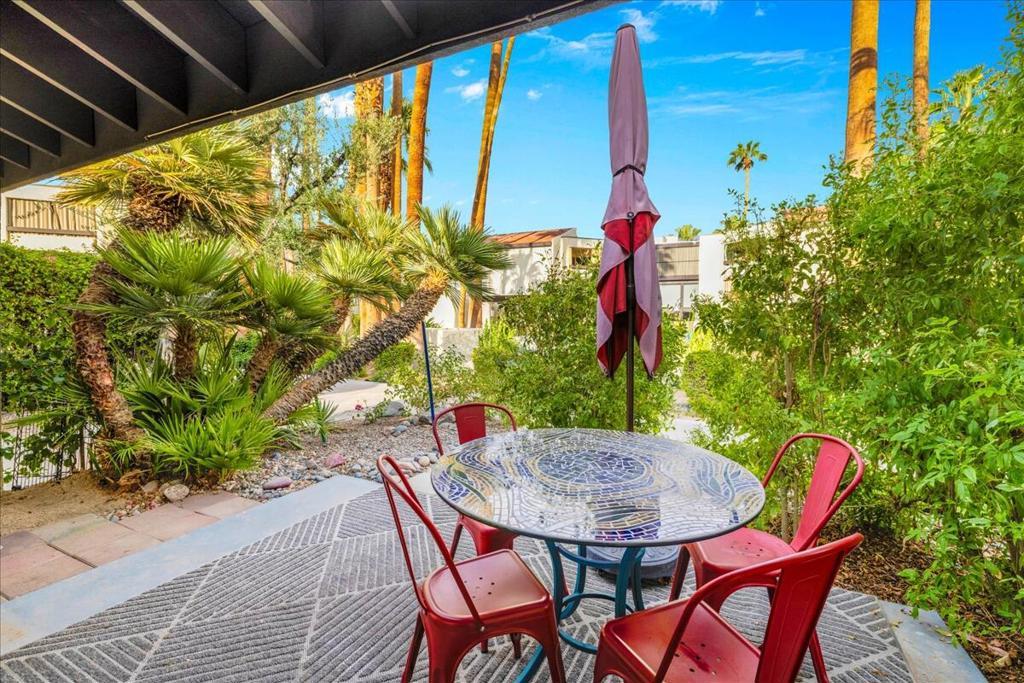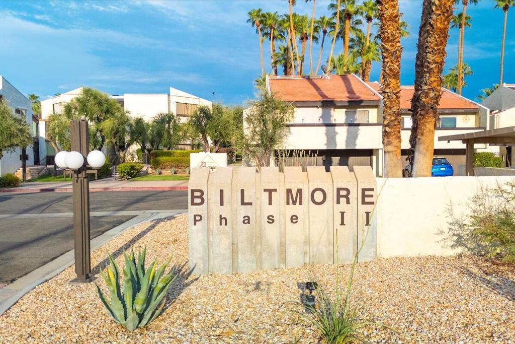Discover resort-style living at Biltmore Phase II in South Palm Springs. Rarely available, single-story condo with Cathedral-style ceilings overlooking pool & spa. Adjacent to popular Deepwell neighborhood, this stunningly remodeled condo comes with a 1-car garage. Ground-level unit with private patio. Relax & enjoy serene garden views. Interior updated with attention to detail--fresh, modern finishes & fixtures. Open concept floorplan. Large living/dining area. Kitchen features stainless appliances, custom wood cabinetry, designer backsplash & easy-care countertop. Spacious primary with large closets & spa-like bath. Bathroom is accessible from hallway & primary. Tile flooring throughout with smooth finish ceilings. Custom light filtering window coverings. New appliances: stove, dishwasher, refrigerator, and in-unit washer/dryer stack. Newer: HVAC; front door (with mod crackle glass inserts); dual-pane windows & sliders; bath vanity, storage & shower conversion; garage overhead door; patio outlets & water heater. World-class attractions are just outside your door--ACE Hotel, Villa Royale, Koffi, iconic Downtown Palm Springs, hiking trails & more! Land is on lease by private lessor family (not a Native American land lease). This is the IDEAL refreshed condo to call HOME. Stop searching and START living!