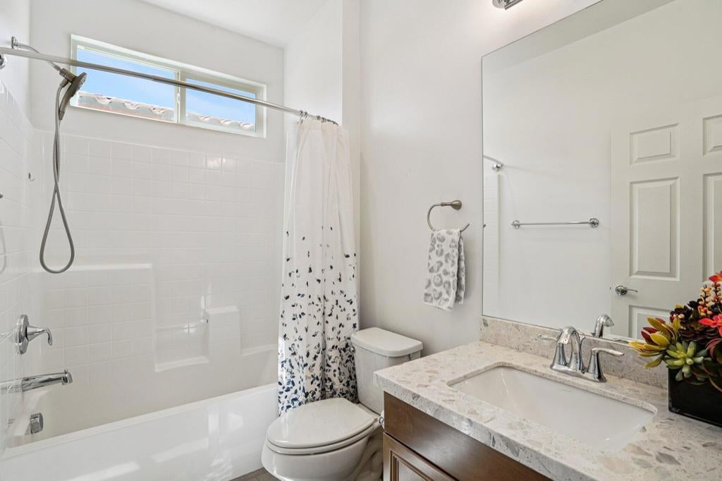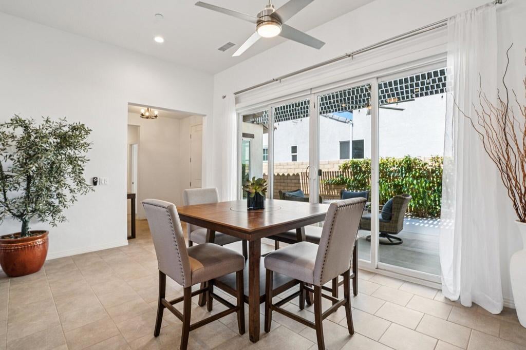 Welcome to Domani, a vibrant 55+ gated community offering resort-style living in the heart of the Coachella Valley. This beautifully furnished, well maintained 3-bedroom, 3.5-bath home features an open-concept layout with soaring ceilings, abundant natural light, and seamless flow between the living, dining, and kitchen areas--perfect for entertaining. The spacious kitchen includes ample cabinetry, modern appliances, and a large island ideal for casual dining. Enjoy indoor-outdoor living in the private courtyard-style patio complete with a pergola ideal for relaxing evenings. Just a short walk from the community's amenities, including a clubhouse, pool, spa, and fitness center. Experience the best of active adult living in this stylish and move-in ready home.
