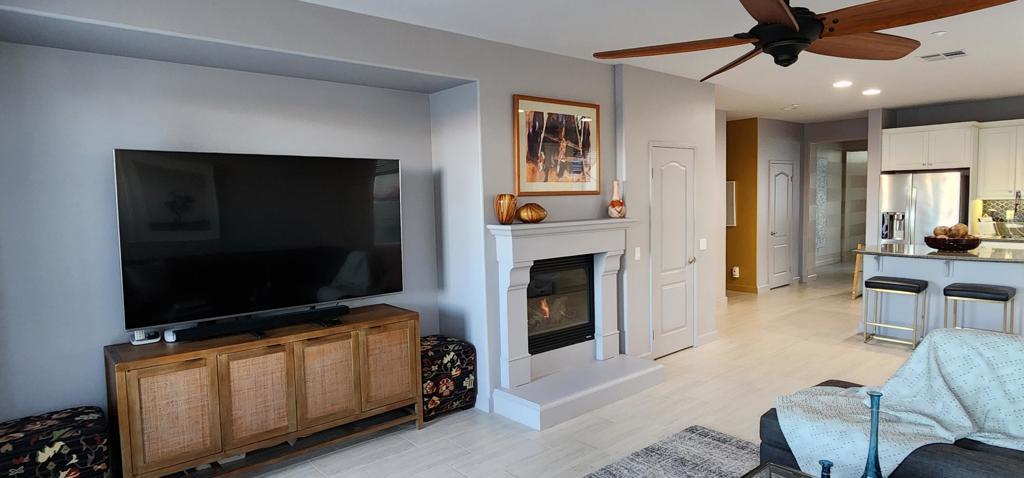 $20,000 PRICE IMPROVEMENT! Welcome to Palm Springs, Four Seasons. A private and gated Exceptional Residence in the Coveted Four Seasons 55+ Community. This beautifully upgraded designer home seamlessly blends elegance, functionality, and comfort throughout. At the heart of the residence is an expansive open floor plan, anchored by a chef's kitchen featuring upgraded stainless steel appliances, slide out shelving and an oversized center island, all with granite countertops. The home also offers a formal dining room and a separate living/sitting room, providing smooth elegant spaces with new porcelain tile throughout. The well separated bedrooms enhance privacy with an oversized primary suite offering a tranquil retreat plus a generous walk-in closet and a luxurious four-piece bath. Both bathrooms are elegantly updated with South African granite countertops, spa jacuzzi tub, new tile flooring, designer ceiling fans, upgraded lighting and refined finishes. Step outside to an immaculately landscaped yard to enjoy sweeping mountain, desert and city views, perfect for morning coffee or evening sunsets. Life at Four Seasons revolves around The Lodge; a beautifully appointed clubhouse offering a vibrant calendar of activities, full time staff, fitness & aerobics studios, a ballroom, game room, library, and more. Resort-style amenities include swimming pools, spas, tennis and pickleball courts, a BBQ pavilion, and scenic walking paths--all designed for wellness, connection, and active living. Located just minutes from downtown Palm Springs, this home combines the serenity of a private community with convenient access to fine dining, designer shopping, world-class entertainment, and premier medical care. Low HOA dues include Frontier fiber optic internet. More than a home, this refined residence captures the essence of the Palm Springs lifestyle--beauty, comfort, and community in perfect balance.