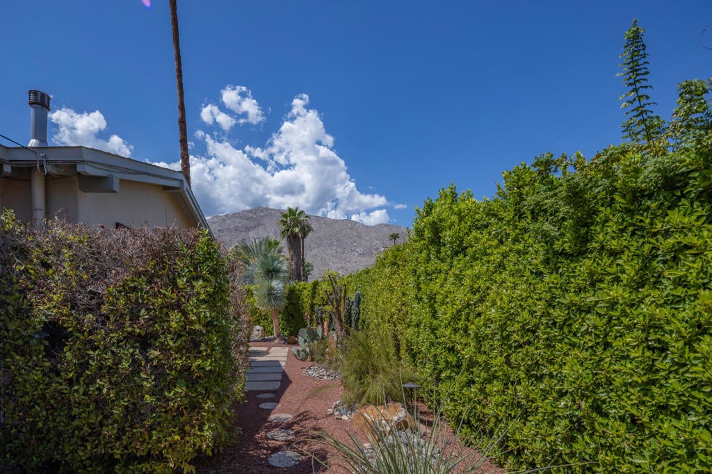 Stylish, and perfectly located duplex in Palm Springs' sought-after Warm Sands neighborhood. This property offers exceptional privacy with mature Ficus trees surrounding the property that creates a secret garden oasis with both units opening to a sparkling pool and spa. Live in one unit while generating rental income from the second or lease both for long-term investment or vacation rental income. Whatever your choice, this property gives you the best of both worlds: lifestyle and income.Unit A (vacant) is a thoughtfully designed bungalow style 1-bedroom, 2-bath residence with a versatile den featuring a Murphy bed for guests. The spacious living room opens to the pool with sweeping mountain views and has a cozy gas fireplace creating a warm gathering space on cooler evenings. Updated porcelain tile flooring throughout. Gourmet kitchen with chef's island, stainless steel appliances (Viking gas range), wine cooler, and brand-new washer/dryer. Primary suite with spa-style bath featuring both shower and deep step-in tub. Private front yard with desert landscaping. Dedicated parking space with remote access gate. Unit B (tenant occupied) is an impressive 2-bedroom, 2-bath unit that spans two levels with soaring ceilings and celestial windows for abundant natural light. A large second-floor bedroom includes a walk-in closet and balcony with room for seating to enjoy spectacular mountain views. Spacious kitchen with walk-in pantry, dual refrigerators, and newer appliances. Main-level primary suite and bath with step-in tub. Open concept living room with sliders on both sides for light and airflow. Private front yard with mountain views. Dedicated parking space with remote access gate. Property includes PebbleTec pool and spa with outdoor shower and patios for each unit. Separate electric and gas meters, tankless water heaters, and laundry in each unit. Corner lot providing maximum privacy and separation between unitsThis is more than a duplex it's a desert retreat with built-in income potential. Whether you're envisioning a private Palm Springs compound, a vacation rental hotspot, or a long-term investment, this property adapts to your vision.