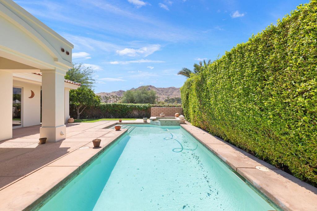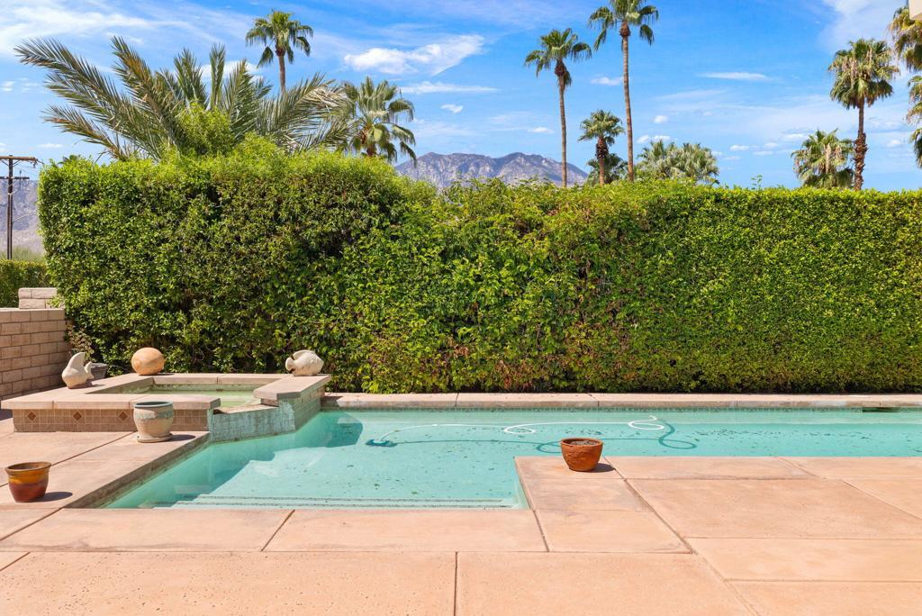 Wonderful South Palm Springs home in the Los Compadres neighborhood of Park Escoba. Beautifully maintained view home with pool and spa plus three car garage. As you enter the double glass entry from the enclosed courtyard, you have full view of living, dining, breakfast and island kitchen areas, all in terrific condition.Two guest bedrooms and two baths on one side of the home, one has access to the rear yard.On the other side of the home is the master bedroom and spa like bath with soaking tub and walk in shower.The island kitchen is a cooks delight with like new, double ovens, gas cooktop, refrigerator, dishwasher and island sink.There is a large laundry room with sink and lots of cabinets.Beautiful landscaped backyard with lawn, citrus trees, plus pool and spa and magnificent views both south and west.This home has been meticulously maintained including all mechanical systems.