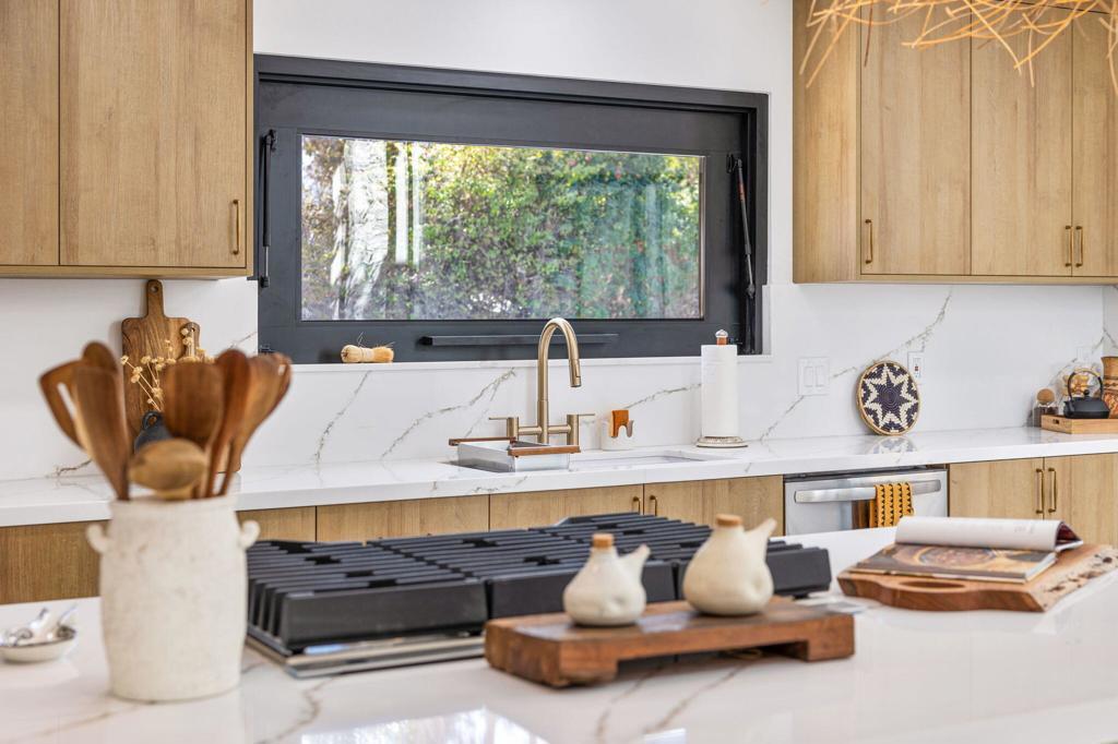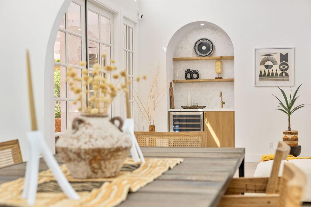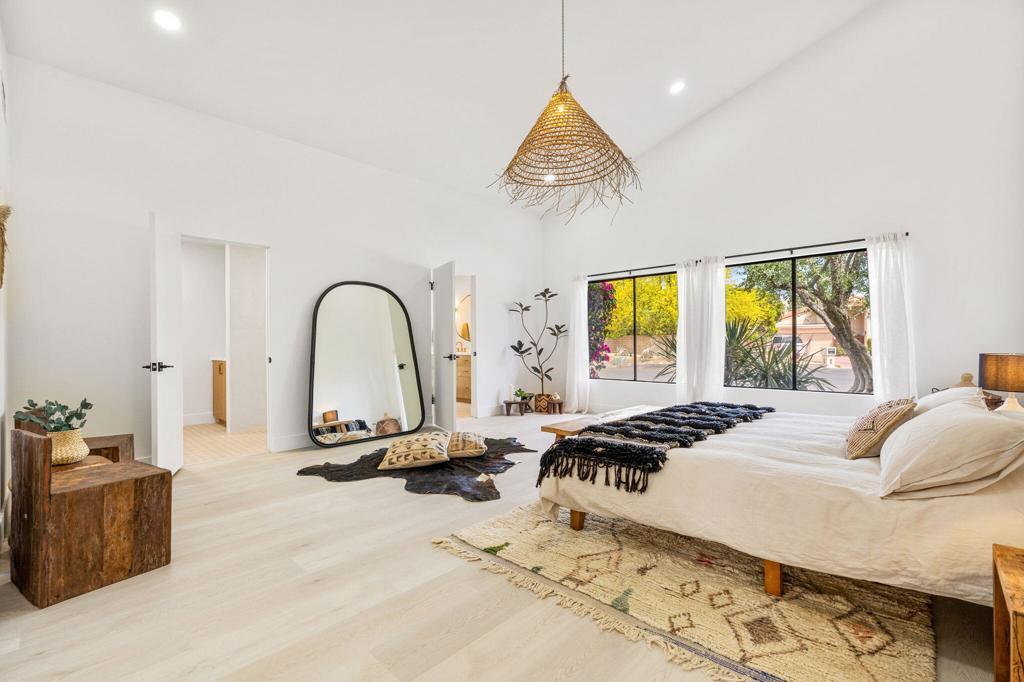 Tulum-Inspired Remodel in the Heart of Rancho Mirage with Incredible West-Facing Mountain Views!Step into resort-style living with this breathtaking, one-of-a-kind renovation in Presidential Estates--an exclusive, quiet, gated community in Rancho Mirage featuring tennis courts and a community pool.This Tulum-inspired masterpiece has been thoughtfully reimagined from top to bottom by a professional designer and team. From the moment you arrive, the brand-new concrete driveway and walkway, fresh exterior paint, new lighting, and lush landscaping set the tone for what's inside. Every detail was carefully curated to create a serene, modern oasis with an effortless indoor-outdoor flow.Inside, soaring ceilings with refinished beams and mood-lit atrium draw you into a space that feels open, airy, and welcoming. With specialty light fixtures and custom-created arches throughout, you will feel like you are on vacation every day. Other updates include premium stone composite LVP flooring, sleek new baseboards, and the removal of all popcorn ceilings which lends the home a clean, contemporary feel. The stunning kitchen features custom wood cabinetry, lovely hardware, high-end quartz countertops with waterfall edge and full backsplash, and stainless appliances including double ovens, custom stove and vent, drawer microwave, dishwasher, refrigerator, and a custom pass-through kitchen window making entertaining effortless. The formal dining room offers views of the expansive, mosaic-tiled pool and spa surrounded by lush landscaping--your own private backyard retreat. A large, covered patio offers plenty of entertaining space but also shade to cool off.The primary suite is a true sanctuary, featuring a spacious walk-in closet and a luxurious en-suite bathroom with dual vanities, a floating soaking tub, and a stunning pass-through shower, custom rock wall and high-end finishes. Two generous guest bedrooms share a beautifully redesigned Jack-and-Jill bathroom with elegant zellige tile.Adorable re-created arched bar with wine fridge, designer tile, and floating shelves. Cozy up to this stylish fireplace with hand-selected mantel.This exceptional remodel showcases impeccable craftsmanship & attention to detail in every corner. Even a convenient EV charge in garage! Let someone else do the work for you and start enjoying now! All of this is offered with a low HOA fee in one of Rancho Mirage's most desirable communities close to shopping and dining.