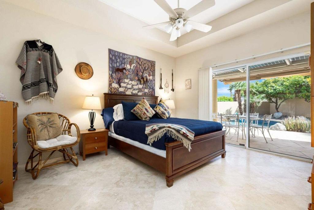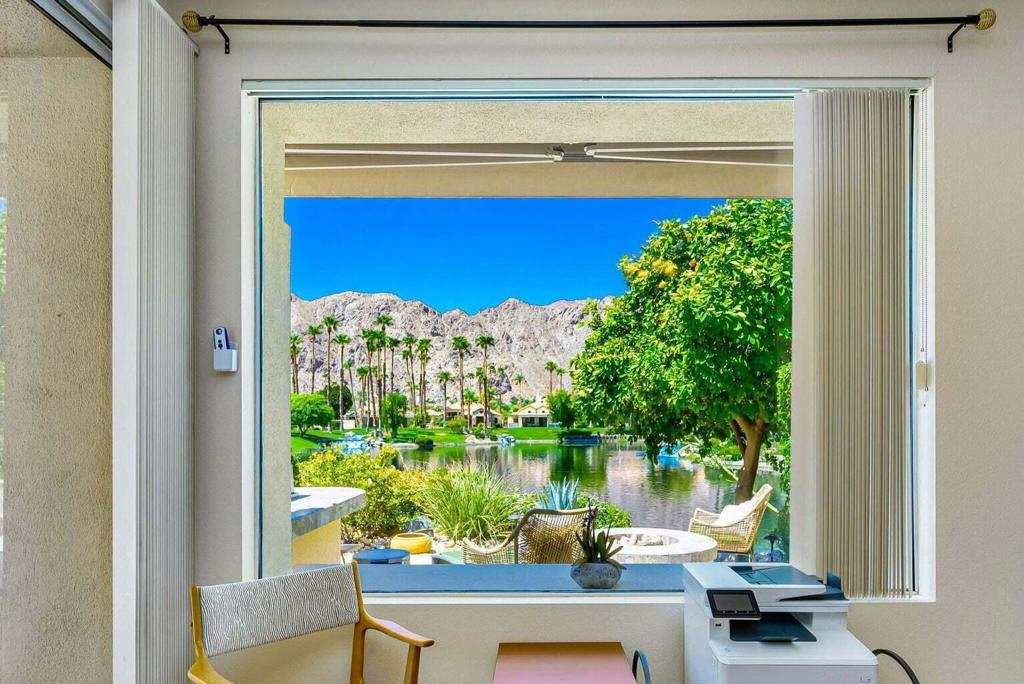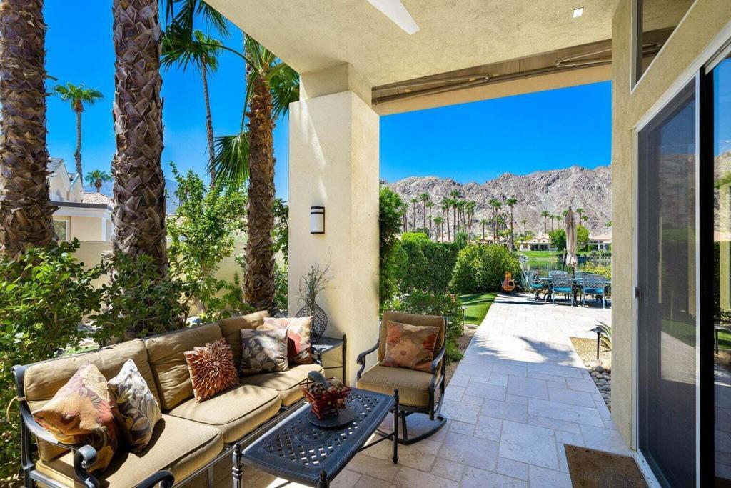 Breathtaking waterfront and mountain views highlight this splendid 3-bedroom, 4-bath home in PGA West. This sought-after open floor plan offers spacious living and floor-to-ceiling windows which showcase the amazing, unobstructed panoramic views. Step into the gourmet kitchen, featuring granite counters, a center island, and ample cabinet space. The large primary suite boasts dual vanities, separate shower, jacuzzi tub, and a generous walk-in closet. All 3 bedrooms are ensuite, offering ultimate privacy. Enjoy beautiful natural light, high ceilings, a marble fireplace, travertine floors throughout and a separate laundry room with a sink. Outdoors, an entertainer's dream awaits-featuring a sparkling private pool and spa, multiple patio areas with electric awning, meticulously upgraded landscaping with artificial turf, fruit and palm trees, built-in gas BBQ, and a fire pit. Not convinced yet? This property also includes a fully OWNED solar system, a spacious garage with epoxy flooring, AC unit and golf cart storage area. HOA dues cover front and backyard landscaping and irrigation, roof replacement, exterior painting, cable and internet, grounds and 24-hour gated security. The PGA West lifestyle offers access to championship golf courses, fine dining, a state-of-the-art fitness center, tennis and pickleball. Call today to schedule your private showing!