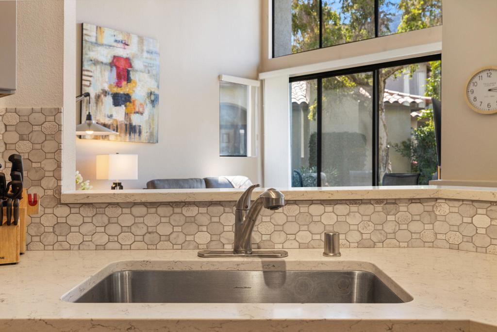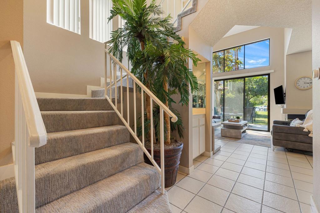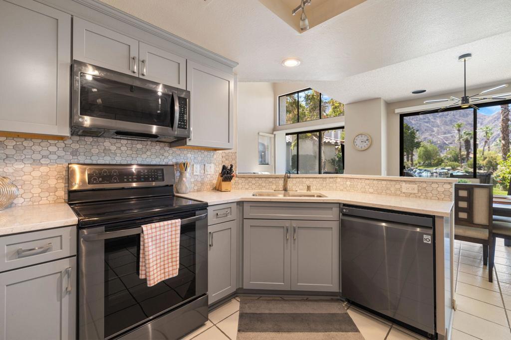 Welcome to 79822 Olympia Fields- stunning best describes this 3 bedroom, 3 full baths, VIEW & private corner lot in prestigious PGA West -Palmer Private community. Let's start with the Views this property sits on - An elevated pool area with waterfalls and Mountain Views. Truly a resort setting. Just a stone's throw away. Now the property - Immaculate, kitchen with quartz countertops, attractive backsplash, great SS appliances, and all 3 bathrooms are Beautifully Remodeled, and Turnkey furnished with Neutral tones. Cozy fireplace in family room overlooking that expansive view off your private patio. There's also a sweet den off the kitchen offering a quiet space for work, reading, etc. Naturally Bright! Bedrooms on an upper level with primary has a balcony on the View side. All bedrooms nicely appointed. Come enjoy the good life - for a vacation, seasonal rental... Flexible! Look forward to hearing from you!
