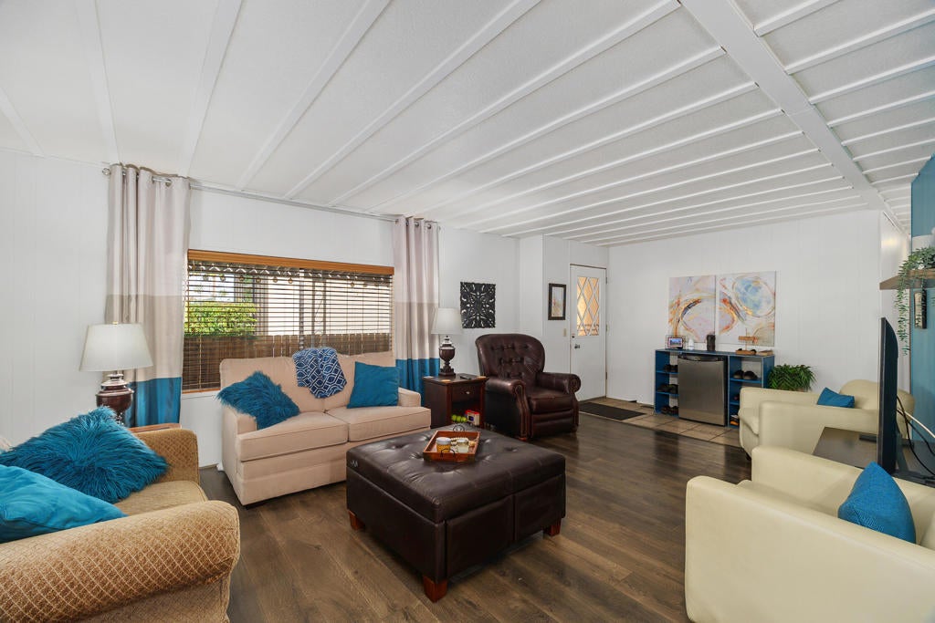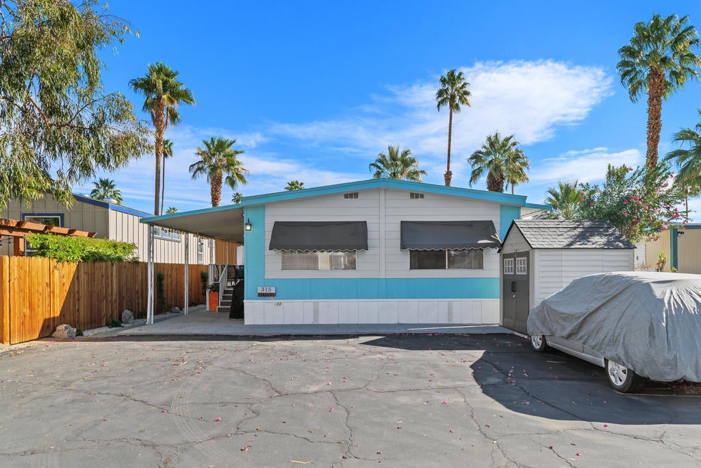 Welcome to 55+ Ramon Park! A rare and eclectic community that is featured on the Palm Springs Mid-Century Modern Tour every year! Discover the perfect blend of comfort and convenience in this beautifully updated home. It sits on a double lot, with 4 spare parking spaces that can be fenced in and re-imagined into a beautiful outdoor living area with western frontage mountain views! In addition enjoy a host of modern upgrades, including new flooring, fresh paint, and a smart thermostat. This home is turnkey furnished, and includes a Chevrolet Malibu! Making it move-in ready for you to explore the wonders of the Coachella Valley! Additional features include a new shed for extra storage and a new swamp cooler to keep you cool during the warmer months. Located in a highly walkable area, you'll have easy access to nearby shopping centers, making errands and leisure activities a breeze. Monthly space rent includes water & trash service with a flat rate of $20.50 for sewer. Metered gas & electric will be billed monthly. Buyer to verify and be approved by park management to purchase. Ramon Park offers fantastic amenities, including a sparkling pool that is heated year-round, and spa, clubhouse, library, banquet facilities for special occasions, shuffleboard courts and fitness center, ensuring that there's always something to do. Don't miss out on this fantastic opportunity to own a home that offers both style and convenience.