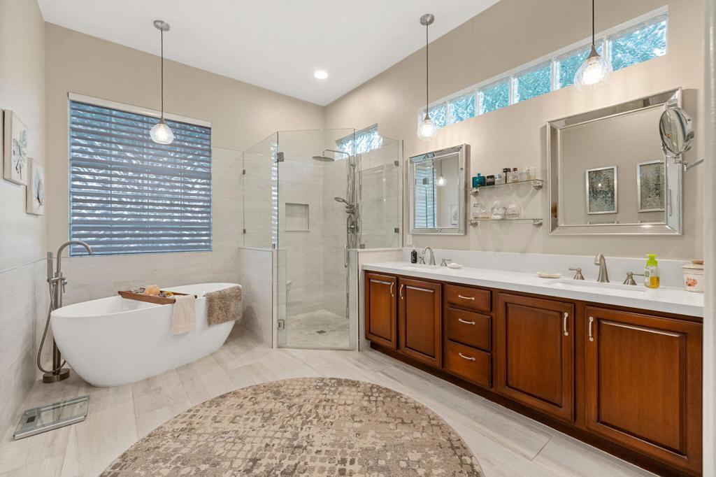 THIS BEAUTIFUL HOME FEATURES a three-phase leased solar system with a combined payment of $530 per month that includes 3 TESLA back up batteries. For many households in this region, traditional electric bills commonly far exceed this amount--especially during high-usage months (can be upwards to $2,000 depending on individual usage). With the solar lease, buyers can enjoy predictable, fixed monthly costs instead of fluctuating utility bills, and may significantly reduce or even offset their electric bill depending on their personal usage.Because the panels are leased, all system maintenance, monitoring, and repairs are handled by the solar company, providing peace of mind and minimizing unexpected expenses.This setup allows the next homeowner to START BENEFITING from solar immediately without the upfront purchase cost while enjoying stable energy payments and professionally managed equipment.This system produces significantly more power than a standard residential solar set up (which would provide only 20 panels and no credits) and this system offers predictable monthly energy costs. 11 HILLCREST FEATURES: 4 full bedrooms 3.5BA, add'l office/den, 3 full-car garage w/AC, Updated kitchen & spa-inspired primary bath; Pristine pool & spa surrounded by privacy; Covered patios for lounging & al fresco dining. Whole house water softener system and a price improvement that makes this an incredible value. If predictable power costs, energy efficiency, and long term savings are important to you, this is a home worth viewing.