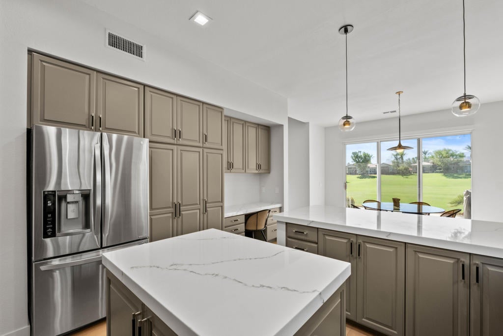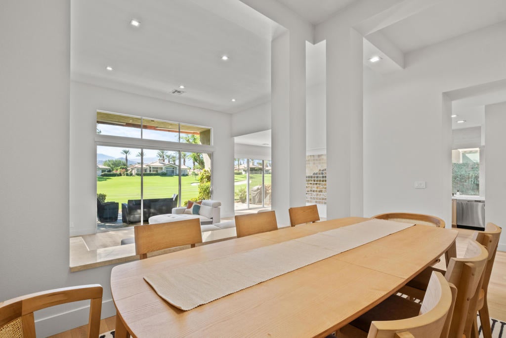 Available April 2026 at $11,000/month & May at $10,000/month + monthly caps on electric and gas. Landlord pays monthly HOA dues that include cable and internet. Renovated contemporary design home with stunning south golf and lake views! This Acacia 5 floor plan offers breathtaking panoramic views of the lake, mountains, and Grove #7, 1 of 2 Arnold Palmer-designed courses at Indian Ridge Country Club in Palm Desert. The 3 bedroom, 3.5 bathroom condo is just one house away from a beautiful community pool and spa. You will be the first to enjoy the new flooring, stainless steel appliances, new quartz countertops, new large flat screen TVs and furnishings, new AC, new security alarm, and all new lighting. The back patio, with new outdoor furnishings and electric awnings with new Sunbrella fabric, is accessible from both the living and dining areas, perfect for entertaining or relaxing while enjoying the expansive views. The living room includes a fireplace and wet bar, and the kitchen features counter seating, an island, and a small desk area. The primary bedroom has a king bed and a large slider overlooking green foliage creating a sense of calm. The en-suite bathroom offers a soaking tub, shower, dual vanities, separate water closet as well as a large walk-in closet. Both guest bedrooms have been completely remodeled and are also en-suite, each equipped with a designer tiled shower, dual sinks & separate water closet. Landlord's club membership available for tenant use with membership approval with 3 month minimum. Utilize the Fitness Center with the latest strength and cardio equipment, an active schedule of classes, a full-service day spa, and three restaurants with outstanding food. Indian Ridge Country Club offers a never-ending social calendar and is one of the desert's premier private country club communities, centrally located in the Palm Springs area, close to Interstate 10, El Paseo, and the airport.