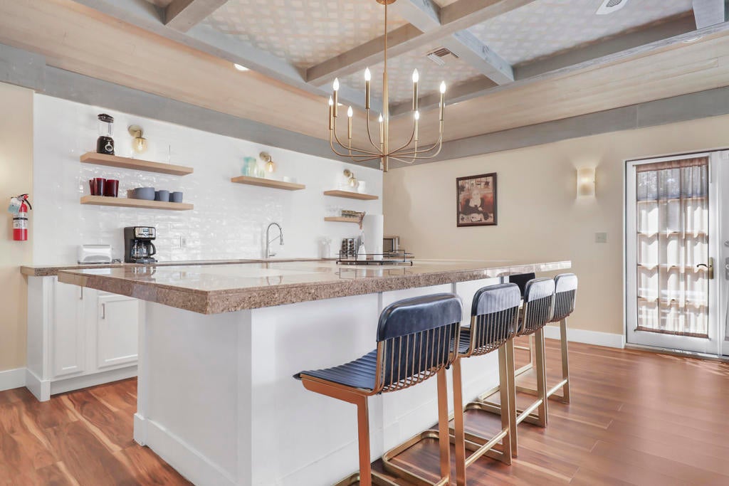- Interior FeaturesSeparate/Formal Dining Room, All Bedrooms Down, Bar, Beamed Ceilings, Breakfast Area, Breakfast Bar, Storage, Wet Bar