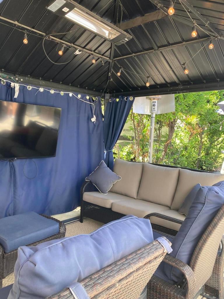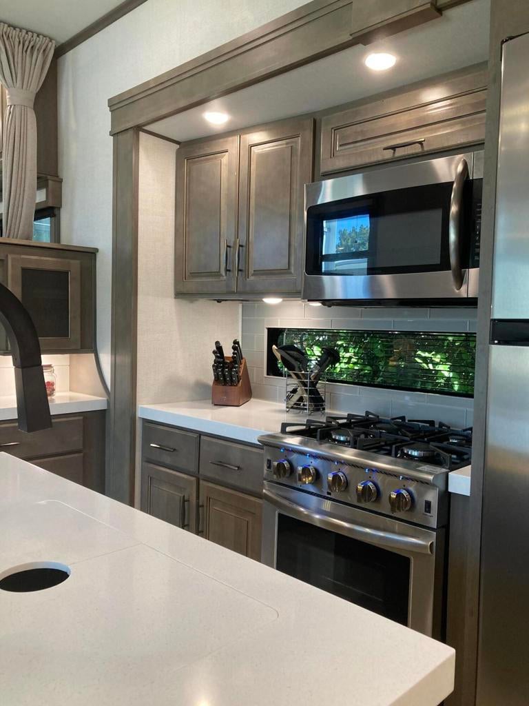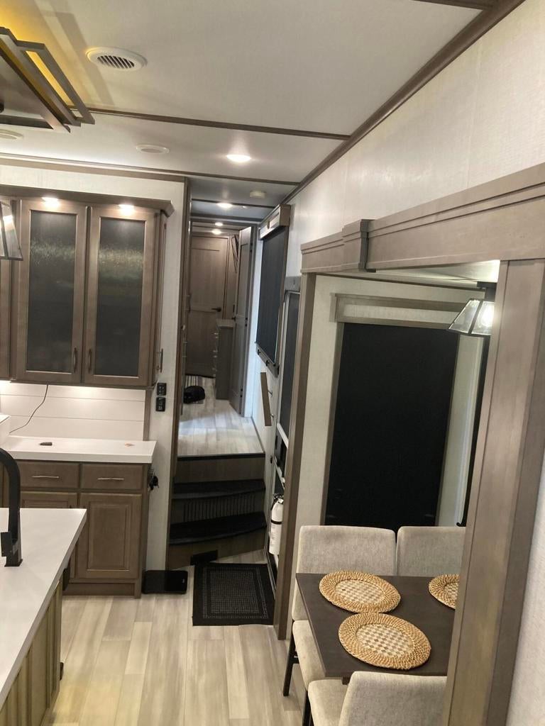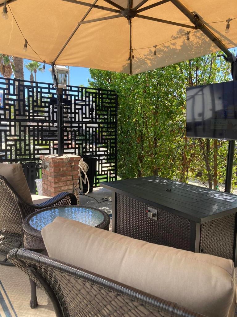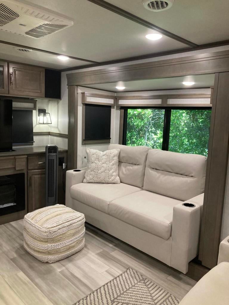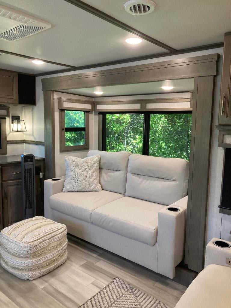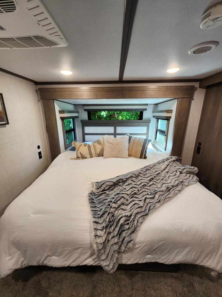 High-End Property Lot 582 with a 2023 Grand Design Solitude for Sale. This remarkable property boasts an impressive array of features, offering the ultimate indoor and outdoor living experience. Situated on an expanded wall lot you'll get to enjoy relaxation and serene solitude. A spacious greenbelt with mature trees provides a tranquil backdrop, while the expansive patio area features dual TVs, LED lights, comfortable seating, a sound system, umbrellas, a gazebo, outdoor heaters, and a fire pit. As evening falls, the ambiance becomes truly enchanting. Be sure to view the evening photos.Inside the RV, a rear living room, beautiful cabinetry, convertible sofas, and stylish bohemian decor await. With picturesque views from nearly every window, this property embodies the perfect blend of luxury and nature.