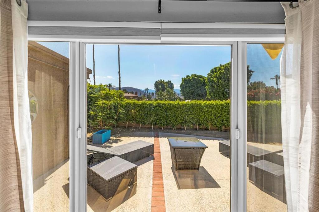 Price Improvement!!!!Tucked away on a quiet cul-de-sac in the gated community of Hidden Palms, this fully renovated 3-bedroom 2-bath home offers privacy and unbeatable location-just blocks from El Paseo, the ''Madison Ave'' of Palm Desert.The chef's kitchen includes new Bosch Cafe' Series appliances, black and white slab granite and a custom island with bar stools. Both bathrooms are completely redone. The living room features a brick gas fireplace, ceramic logs and stunning mountain views.Enjoy the secluded, west-facing garden with mature hedges, outdoor shower room and steps away from the community pool. Hidden Palms also offers tennis and pickelball courts, walking paths and lush landscaping with ponds and fountains. Furniture is negotiable