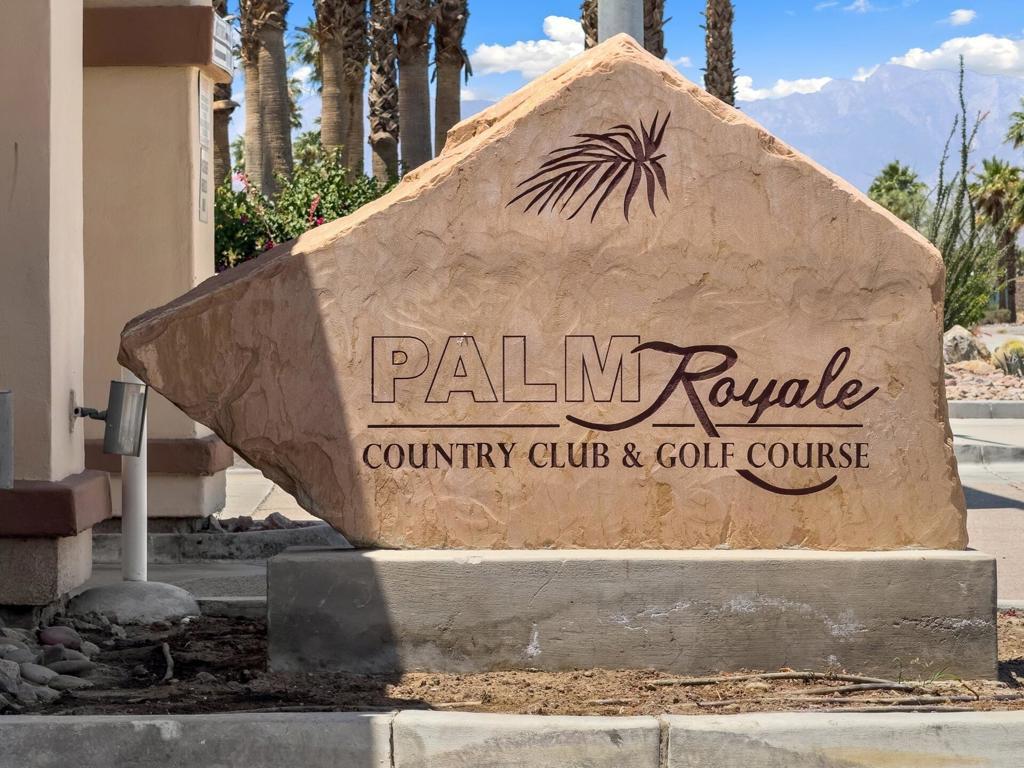 Welcome Home to the gated Palm Royale Country Club community! This Condo features 2 bedrooms and 1.75 bathrooms, with a spacious floor plan, vaulted ceilings, plantation shutters, in-unit laundry, included appliances, a 1-car garage, and the exterior was recently painted in 2024! The Great Room with living and dining area offers plantation shutters, carpet floors, lots of natural light, and a slider to the patio with relaxing golf course views. The kitchen offers tile counters with bar overhang, wood cabinetry and plenty of storage space. Both bedrooms are generously sized with the primary suite offering a private bathroom, there is also a hall bathroom for the secondary bedroom and guests to share. Additional upgrades include all new vinyl double pane windows and sliding door installed in 2021, instant hot Water Heater 2021, HVAC 2006 Enjoy many community amenities including Golfing at the desirable community course designed by Ted Robinson (one of the best par 3 courses in the entire Coachella Valley), as well as Pickleball, Tennis, 6 community pools and spas to choose from, Fitness Center, Clubhouse. The HOA fees also include UNLIMITED Golf, High-Speed Internet, Cable TV, Sewer, Trash, and grounds maintenance. Located across the street from the Indian Wells Tennis Venue (host to BNP Paribas Open Tennis Tournament), also near many shopping and dining options! Schedule your tour today!