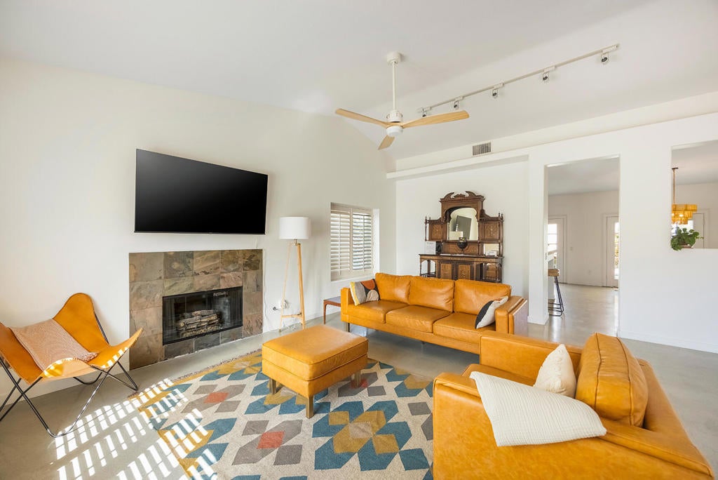 Live the Palm Springs Lifestyle - Without Compromise and assume a $452,033.63 VA 2.5% loan -This chic and updated 4-bed, 2-bath home has everything you've been looking for--a quiet location that's still walkable to shopping and everyday essentials, plus gorgeous mountain views and no HOA fees.Inside, you'll find a modern, open floor plan with soaring vaulted ceilings, fresh custom paint, and new polished concrete floors. Love to entertain? The stylish kitchen flows into your living and dining areas, all bathed in natural light.Step outside and enjoy a private front yard for sunsets, or relax in the eastern-facing backyard with a sparkling pool and new pool heater--perfect for mornings in the sun or shaded afternoons.With thoughtful upgrades throughout--smart thermostat, new irrigation, mirrors, fixtures, and more--this home is move-in ready and fully furnished (with select exclusions).Bonus: Fee simple land = you own the land. No HOA = more freedom.This home is equal parts comfort, style, and convenience. Don't miss your chance to own a slice of Palm Springs paradise!