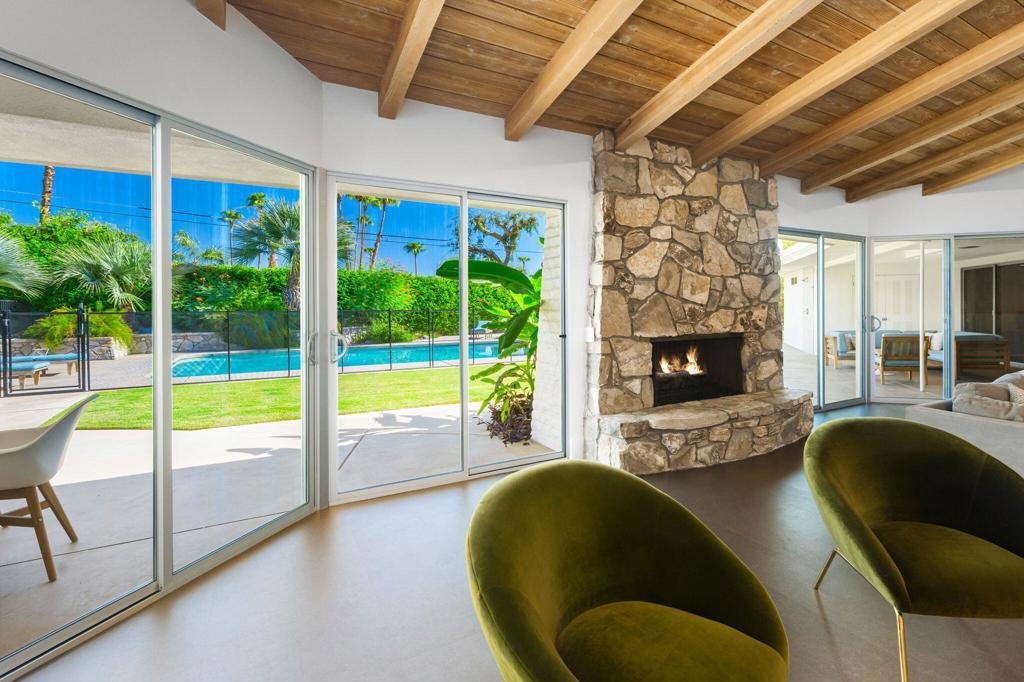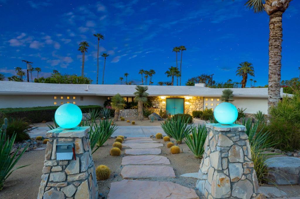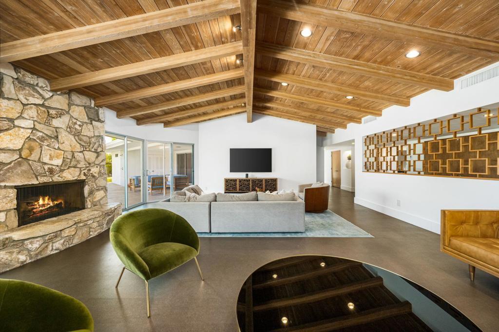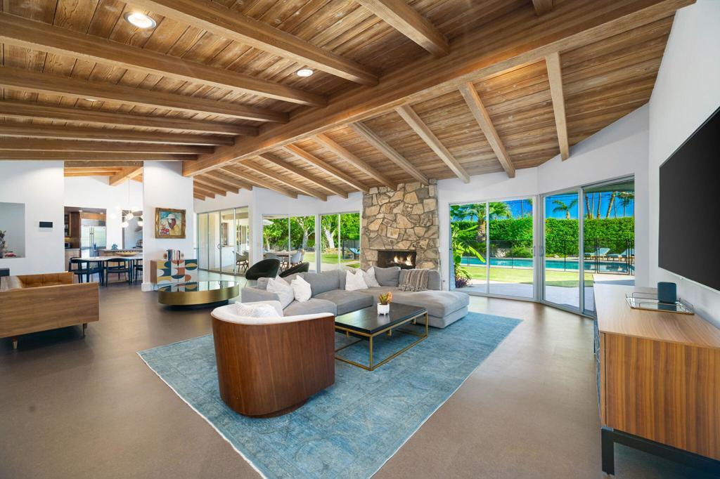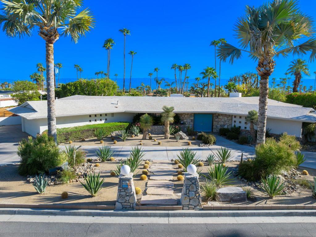 Discover The Pinkley House - An Icon of Mid-Century Design, Reimagined for Today. In the heart of South Palm Desert, just moments from El Paseo's high-end dining, shopping, and entertainment, sits a meticulously restored mid-century modern estate of rare significance. Designed in 1961 by renowned architect John Outcault for celebrated author and newspaperman Virgil Pinkley, this 3,696 sq ft residence, affectionately known as The Pinkley House, is both a preserved architectural treasure and a refined modern home. Set on over half an acre, the 4-bedroom, 3-bath property has undergone a complete restoration, with updated systems throughout and every detail thoughtfully considered. The gourmet chef's kitchen features custom walnut cabinetry, commercial-grade appliances, a breakfast nook, breakfast bar, and a generous passthrough from the formal dining room, ideal for entertaining. The expansive primary suite boasts a newly redesigned walk-in closet, exceptional scale, and direct access to private patios. One of the guest baths retains its original 1960's tile, expertly restored as a nod to the home's heritage. The living and dining areas are anchored by soaring redwood ceilings and a striking native stone fireplace. Multiple doors connect the interiors to secluded courtyards and lush patios, creating a seamless indoor-outdoor flow. The north-facing back of the home is a wall of glass the entire length of the house, framing views of the resort-style backyard with mature landscaping, landscape lighting, and the LED-lit saltwater pool. Outdoors, enjoy multiple entertaining spaces including an outdoor kitchen, fire pit seating area, outdoor shower, and the pool with removable safety fence and gate. Native stone accents on the exterior and the original front door with period hardware further honor the home's mid-century roots. Featured on Modernism Week's Signature Home Tour in 2018, The Pinkley House is a rare opportunity to own a celebrated piece of Palm Desert's architectural history, lovingly restored for the next generation.