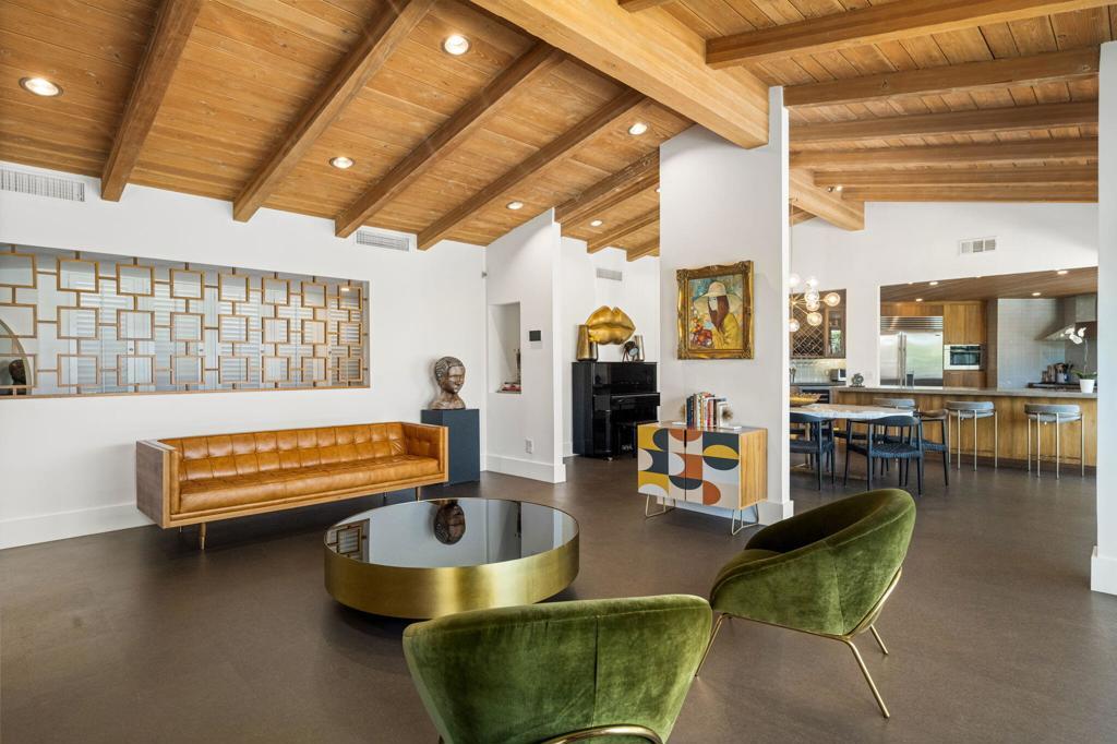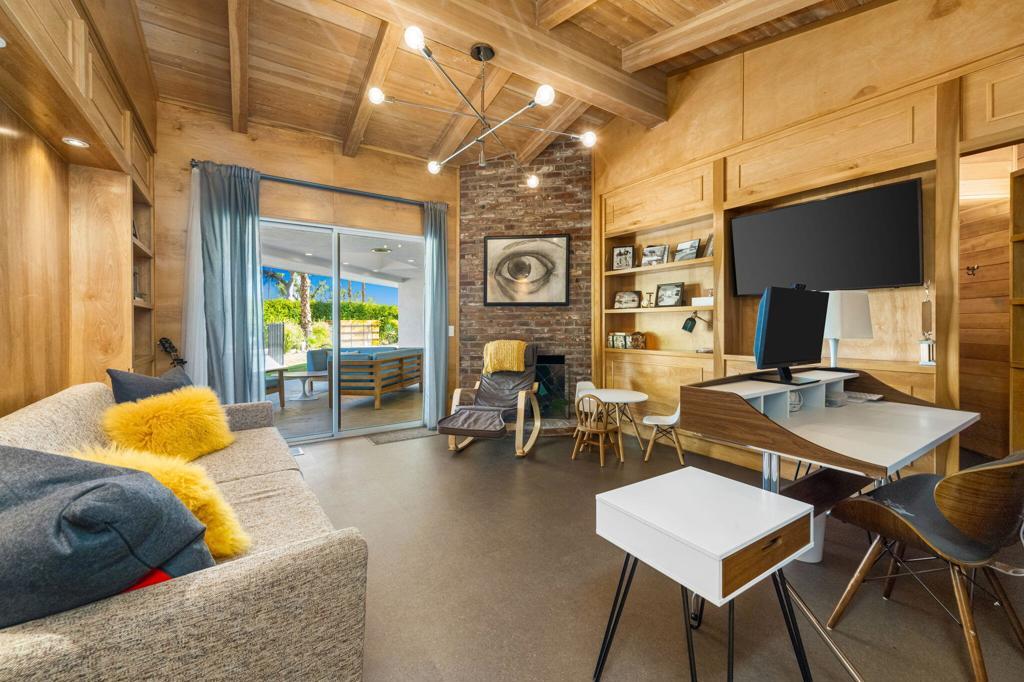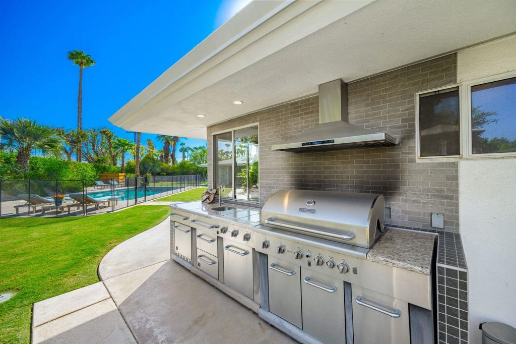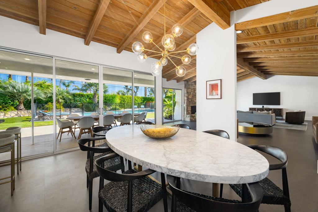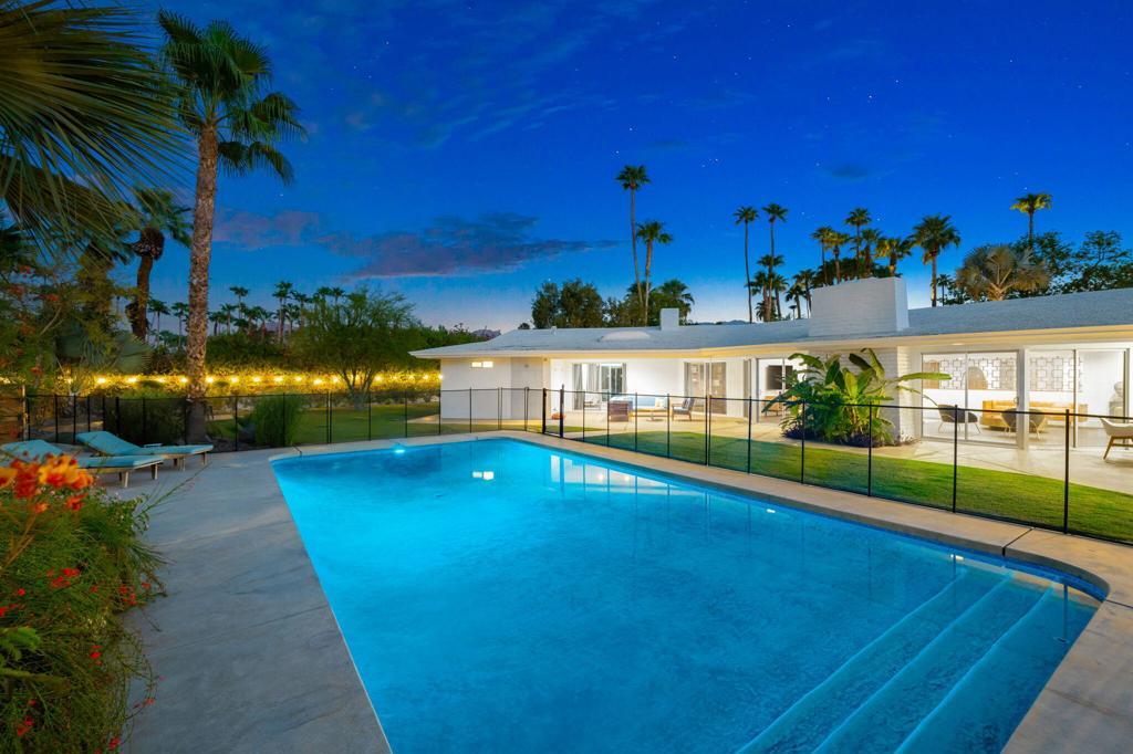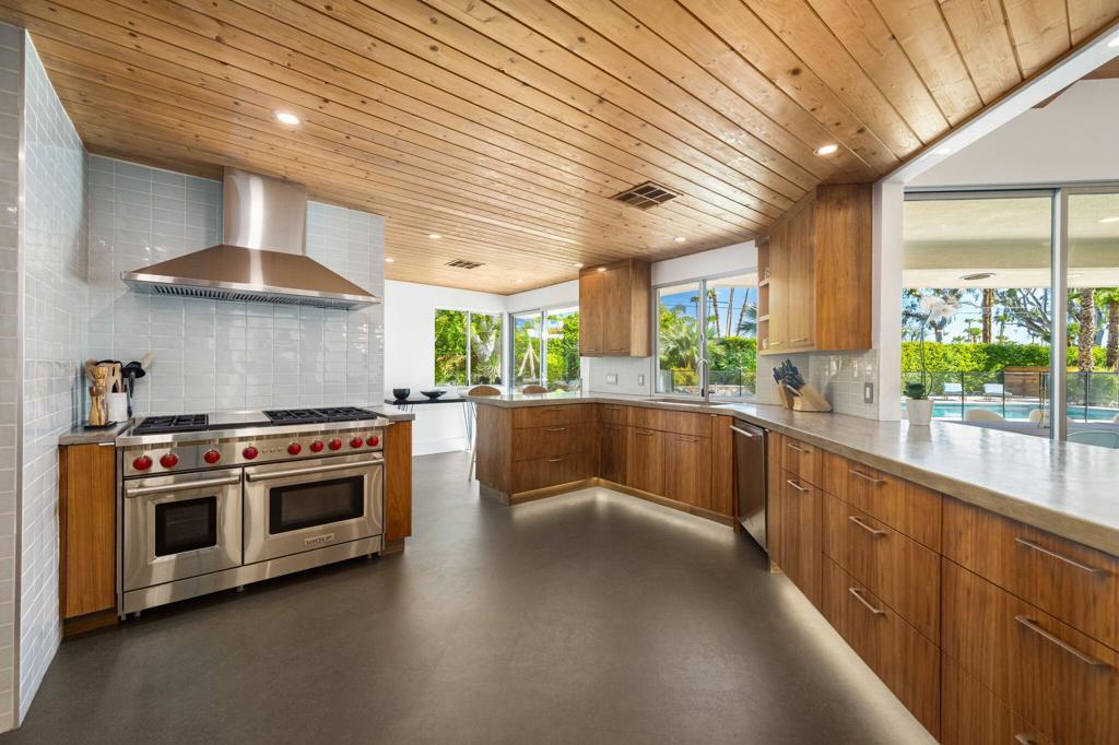 Discover The Pinkley House - An Icon of Mid-Century Design, Reimagined for Today. In the heart of South Palm Desert, just moments from El Paseo's high-end dining, shopping, and entertainment, sits a meticulously restored mid-century modern estate of rare significance. Designed in 1961 by renowned architect John Outcault for celebrated author and newspaperman Virgil Pinkley, this 3,696 sq ft residence, affectionately known as The Pinkley House, is both a preserved architectural treasure and a refined modern home. Set on over half an acre, the 4-bedroom, 3-bath property has undergone a complete restoration, with updated systems throughout and every detail thoughtfully considered. The gourmet chef's kitchen features custom walnut cabinetry, commercial-grade appliances, a breakfast nook, breakfast bar, and a generous passthrough from the formal dining room, ideal for entertaining. The expansive primary suite boasts a newly redesigned walk-in closet, exceptional scale, and direct access to private patios. One of the guest baths retains its original 1960's tile, expertly restored as a nod to the home's heritage. The living and dining areas are anchored by soaring redwood ceilings and a striking native stone fireplace. Multiple doors connect the interiors to secluded courtyards and lush patios, creating a seamless indoor-outdoor flow. The north-facing back of the home is a wall of glass the entire length of the house, framing views of the resort-style backyard with mature landscaping, landscape lighting, and the LED-lit saltwater pool. Outdoors, enjoy multiple entertaining spaces including an outdoor kitchen, fire pit seating area, outdoor shower, and the pool with removable safety fence and gate. Native stone accents on the exterior and the original front door with period hardware further honor the home's mid-century roots. Featured on Modernism Week's Signature Home Tour in 2018, The Pinkley House is a rare opportunity to own a celebrated piece of Palm Desert's architectural history, lovingly restored for the next generation.
