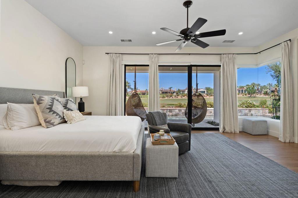 Welcome home to this beautifully remodeled Model 622, a 3,766 sq. ft. residence that embodies warmth, comfort, and elegance inside the prestigious gates of Toscana Country Club. With four bedrooms and four and a half baths, including a detached casita with its own sitting area, the home has been thoughtfully designed for both relaxation and entertaining.Set on a wide lot, this home offers one of the community's premier vantage points, showcasing sweeping views of the Jack Nicklaus-designed North Course, tranquil lakes, and dramatic mountain ranges beyond. The setting combines the serenity of nature with the prestige of a world-class golf community.Inside, soaring ceilings and expansive glass doors fill the great room with natural light and connect seamlessly to the outdoors. The kitchen features new luxury appliances, a generous island, sleek countertops, and custom cabinetry, while the dining area captures golf and lake views. The primary suite serves as a private retreat with expansive windows, a spa-inspired bath, dual vanities, soaking tub, and glass-enclosed shower. Each guest room is en suite, and the detached casita offers an ideal private space for family or friends.Outdoor living is central to desert life, and this home delivers. The backyard offers a sparkling pool and spa, built-in kitchen, and expansive entertaining spaces overlooking the course and lakes. The front courtyard adds another inviting space with a fireplace, water feature, and private putting green.Additional upgrades include owned solar panels, a three-car garage with air conditioning, and a whole-home water filtration system.Blending luxury and comfort, this Model 622 residence offers a rare opportunity to enjoy the desert lifestyle in one of Indian Wells' most exclusive communities.