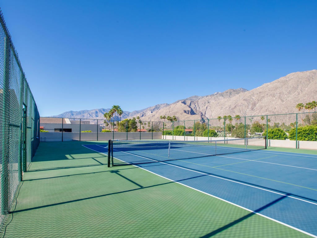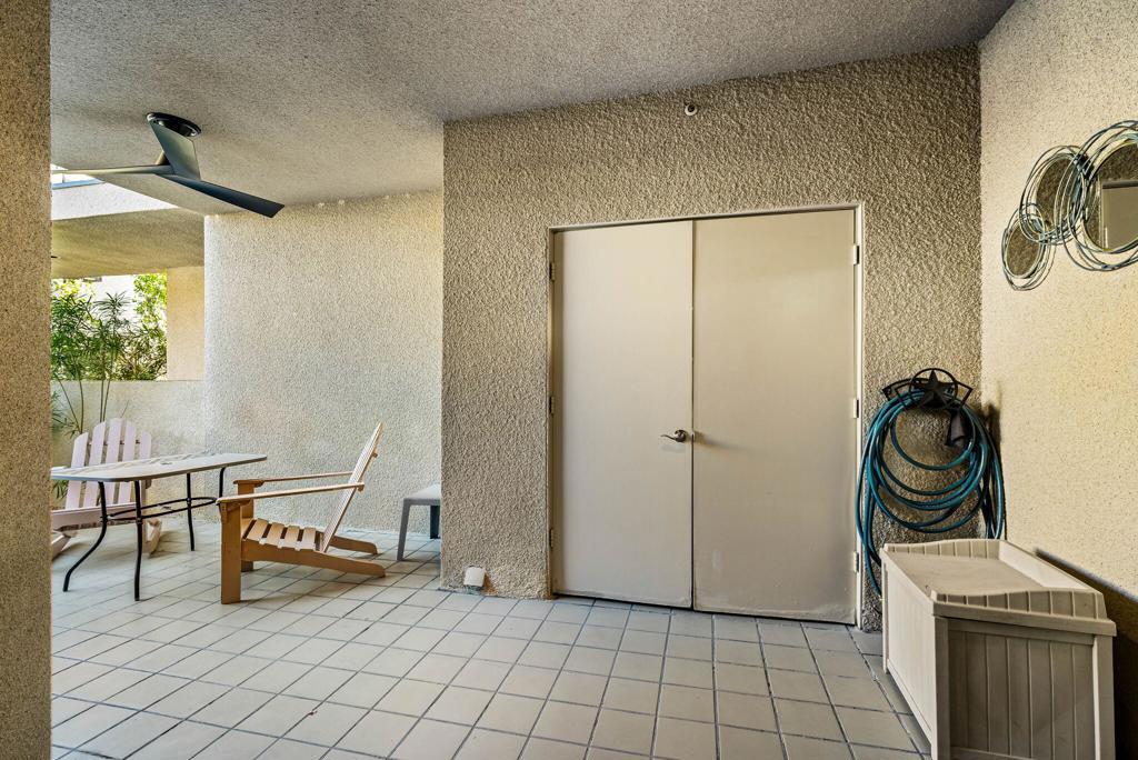 Welcome to this condo in a complex with architectural significance designed by Hugh M. Kaptur in the heart of Palm Springs! This ground-floor unit is perfectly situated near downtown, offering easy access to the city's best shopping, dining, and entertainment. Featuring an expansive private patio, this home is paradise, ideal for relaxing with morning coffee or hosting sunset gatherings under the desert sky. Inside, you'll find a bright and airy open floor plan with sleek accents. The living area flows seamlessly into the dining space and kitchen. Sliding glass doors provides direct access to the patio and a full-sized washer and dryer closet with some storage, creating a harmonious indoor-outdoor living experience with mountain view. The spacious bedrooms offer a serene retreat with ample closet space. Additional highlights include tile flooring throughout, and energy-efficient features like dual paned windows and newer HVAC and hot water heater. Boutique complex offers lush landscaping, a sparkling community pool and spa, and covered parking that is located close to the unit. Don't miss this rare opportunity to own a centrally located condo that combines modern luxury with Palm Springs' iconic lifestyle! HOA dues: $577/month and include Earthquake Insurance, water, sewer, trash.