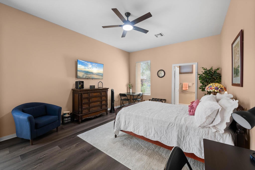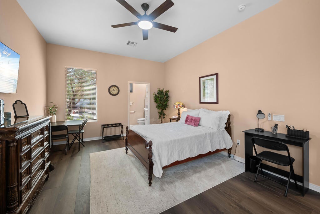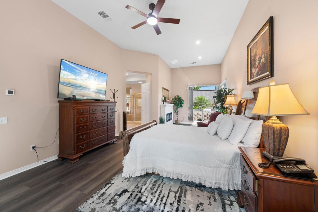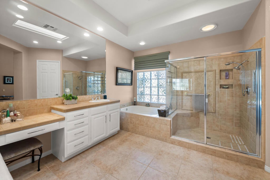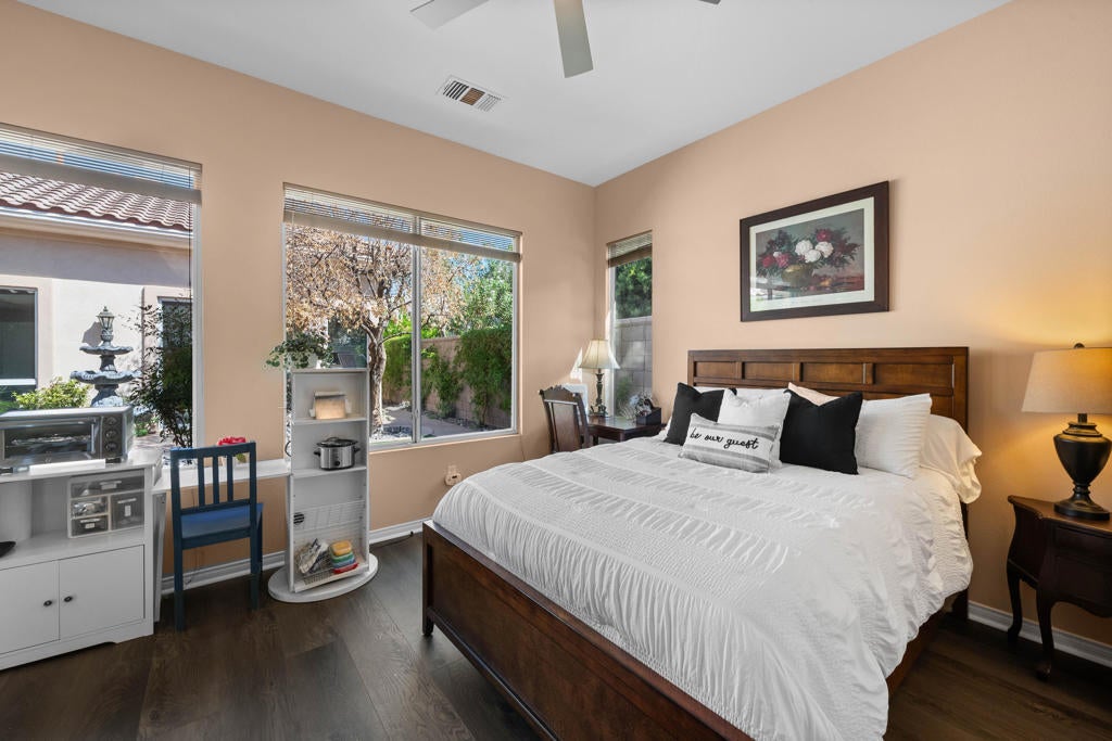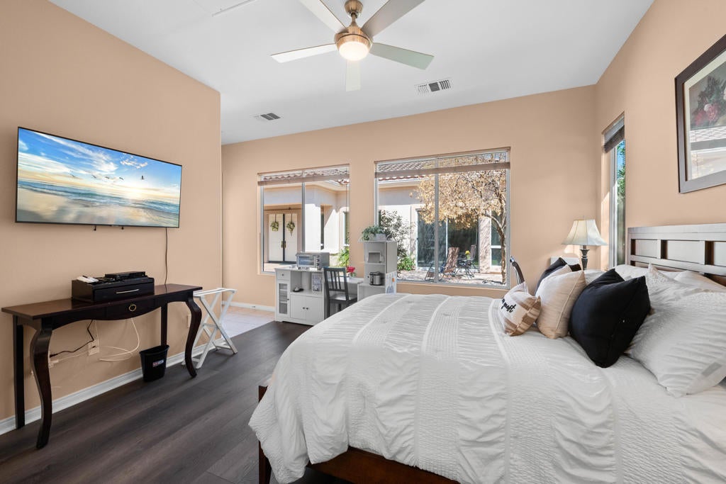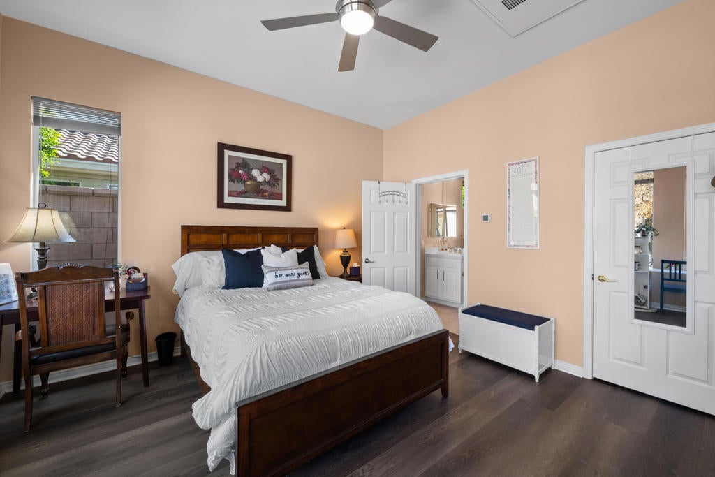Turnkey Furnished! Sun City Palm Desert Marseille Model with fully self contained Casita. Spectacular home located walking distance to the Lakeview Clubhouse and Miniature golf course. Great opportunity to enjoy all Sun City has to offer for 4,5 or 6 months in this beautiful estate home. Private Gated courtyard. Great room with fireplace. Chefs island kitchen. Main house has Dual on-suites, Primary with King bed & TV, fireplace & seating area, dual sinks w/ seated vanity, step in shower, soaking tub and large custom closet. Guest suite w/queen bed, TV, game table and bath w/shower/ tub combination. Office with built-in desk. And detached casita with kitchenette, queen bed, TV & bath with shower tub combination. Patio set. Amazing 2 car garage with all the essentials.