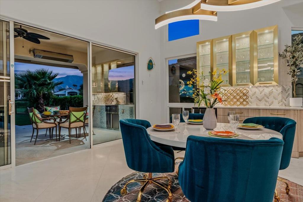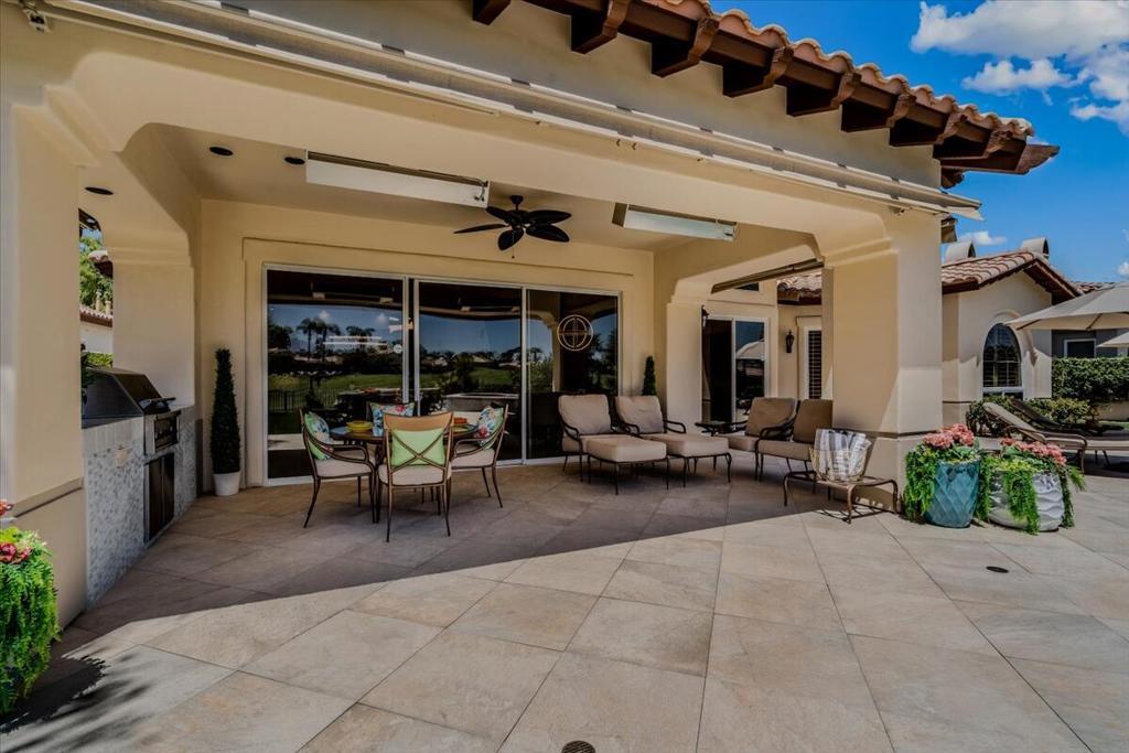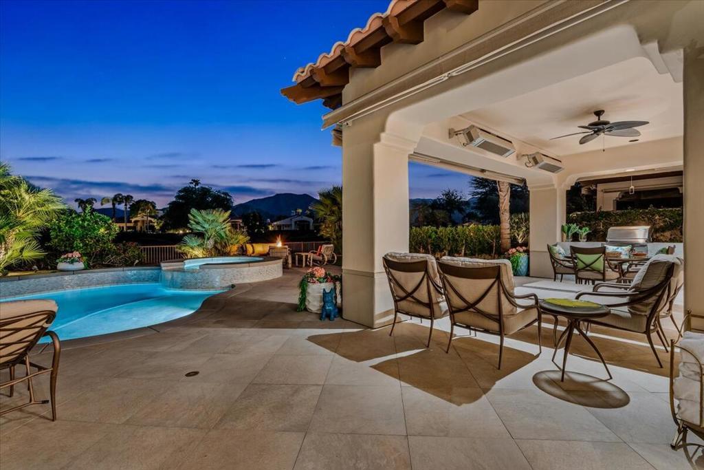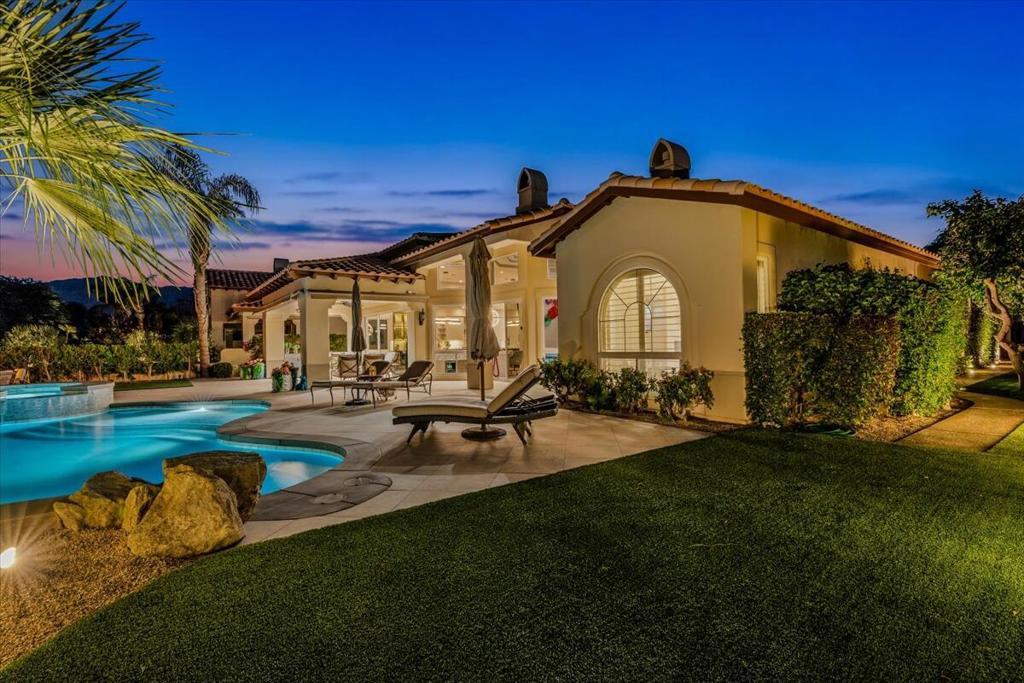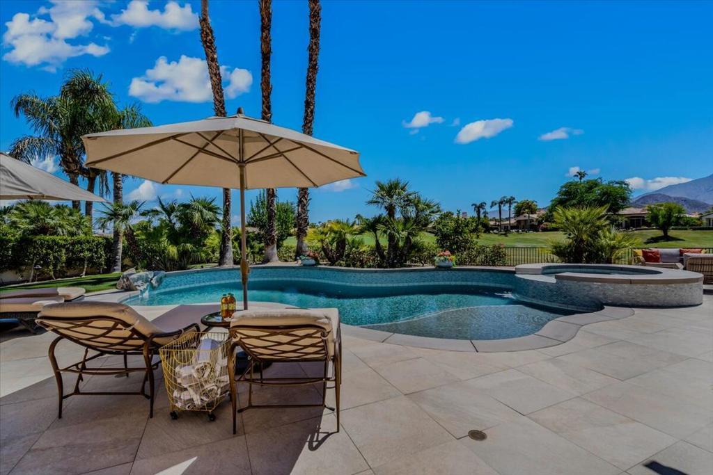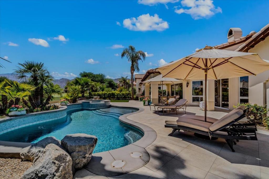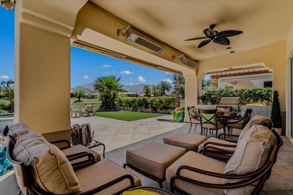 ICONIC DESERT LUXURY. This rare opportunity to experience magnificent southern mountain views from an exceptionally featured property within the timeless beauty of Rancho La Quinta Country Club, does not occur very often! This meticulously renovated and updated contemporary home places a premium on exceptional living spaces. With five bedrooms and five and a half baths, shared between two casitas and the main home. This masterclass in minimalist elegance spans 3,822 square feet of seamless lines and ease of transitional spaces all surrounded by a canvas of subdued and ward colors.This oasis was built to support a passion for an active lifestyle and five-star appetite! Among the many upgrades, this home features all-new plumbing, modern lighting, fans, and elegant plumbing fixtures. With a custom Executive Chef's kitchen designed by ''Kitchens and Baths By Lynn'', this space blends function and elegance equipped with Cambria Quartz surfaces, soft-close dovetail drawers, and an XL central island surrounded by an ILVE 48'' Nostalgic freestanding range/double oven, two dishwashers, warming/slow cooker oven, sub-zero refrigerator and a buffet space which features '' Larson Juhl'' framed gold cabinets. With an additional kitchen window, the San Jacinto mountains invite their brilliance into this space while inspiring your heart to explore the exceptional exterior, which boasts large entertaining area with firepit and heaters! Beautiful custom pool and spa. AVAILABLE for lease 2025/2026 SEASON