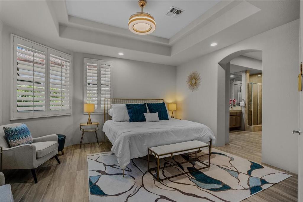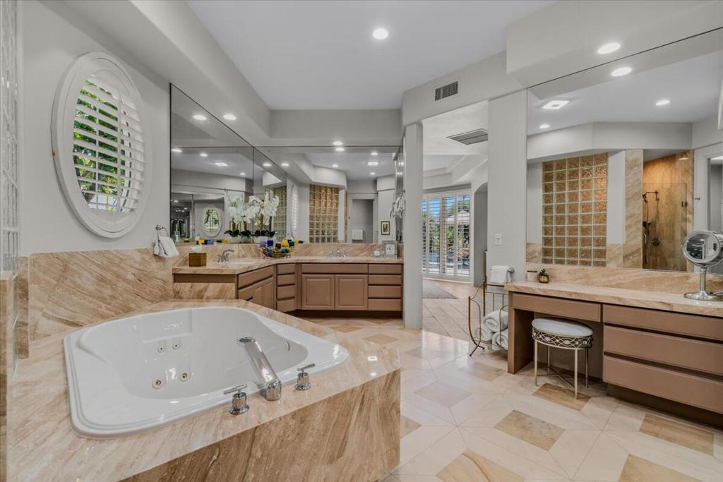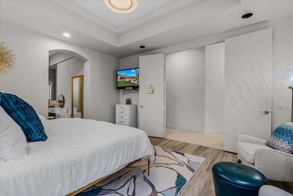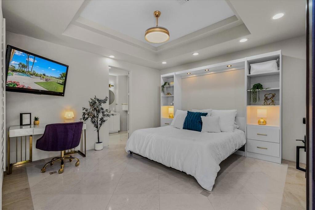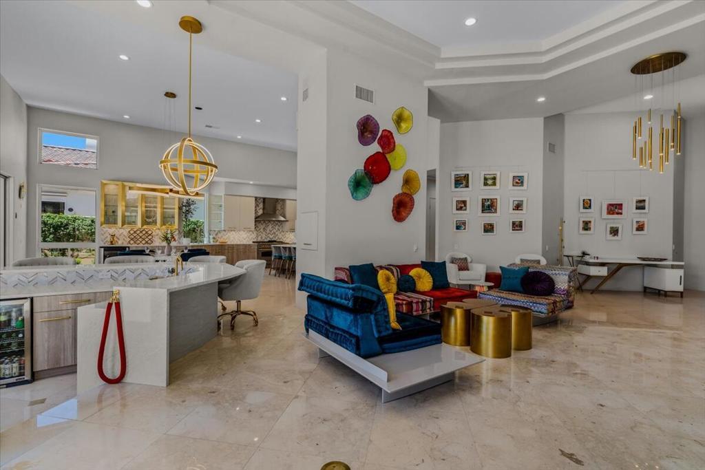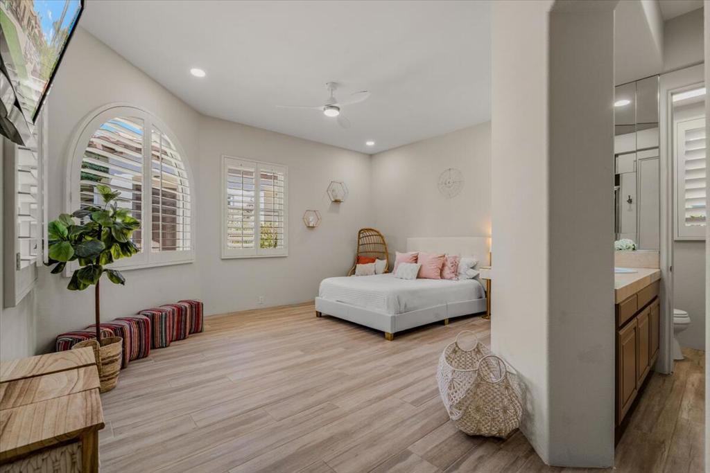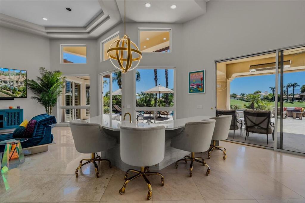 ICONIC DESERT LUXURY. This rare opportunity to experience magnificent southern mountain views from an exceptionally featured property within the timeless beauty of Rancho La Quinta Country Club, does not occur very often! This meticulously renovated and updated contemporary home places a premium on exceptional living spaces. With five bedrooms and five and a half baths, shared between two casitas and the main home. This masterclass in minimalist elegance spans 3,822 square feet of seamless lines and ease of transitional spaces all surrounded by a canvas of subdued and ward colors.This oasis was built to support a passion for an active lifestyle and five-star appetite! Among the many upgrades, this home features all-new plumbing, modern lighting, fans, and elegant plumbing fixtures. With a custom Executive Chef's kitchen designed by ''Kitchens and Baths By Lynn'', this space blends function and elegance equipped with Cambria Quartz surfaces, soft-close dovetail drawers, and an XL central island surrounded by an ILVE 48'' Nostalgic freestanding range/double oven, two dishwashers, warming/slow cooker oven, sub-zero refrigerator and a buffet space which features '' Larson Juhl'' framed gold cabinets. With an additional kitchen window, the San Jacinto mountains invite their brilliance into this space while inspiring your heart to explore the exceptional exterior, which boasts large entertaining area with firepit and heaters! Beautiful custom pool and spa. AVAILABLE for lease 2025/2026 SEASON