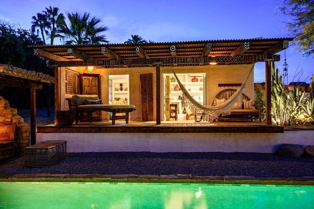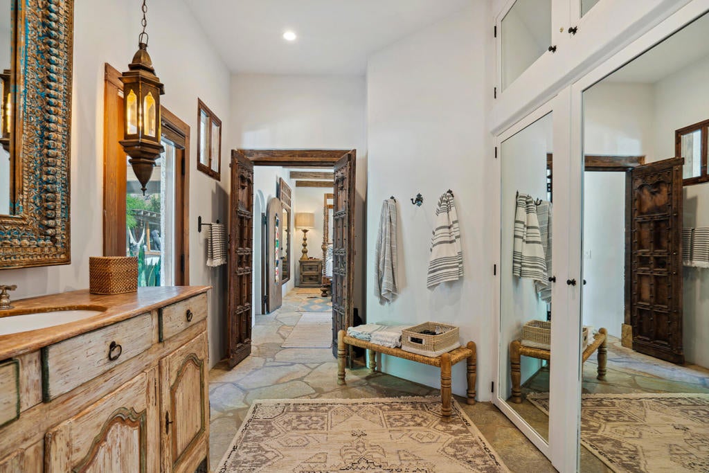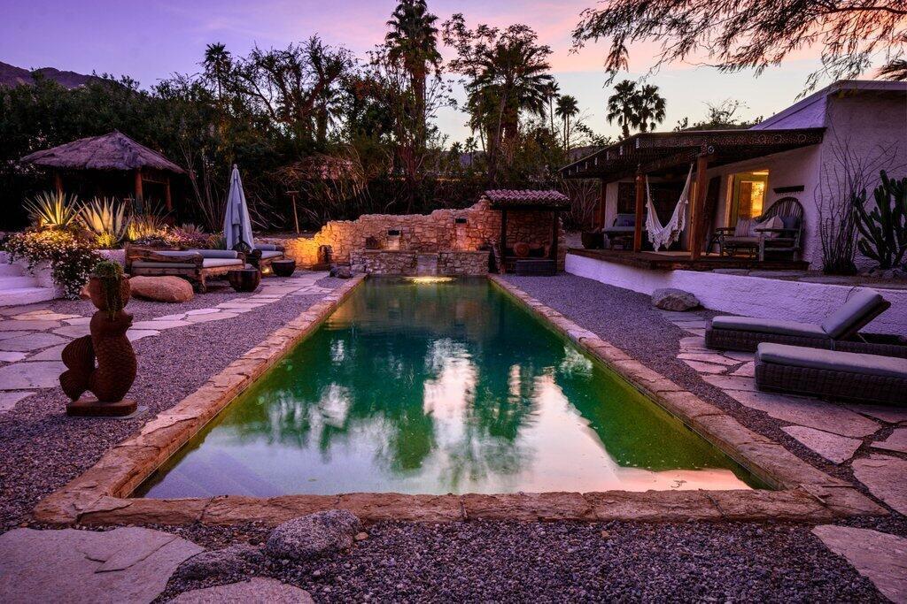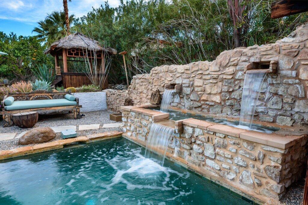 This majestic, Tulum inspired villa located in Rancho Mirage is a true taste of Mexico and Yucatan right in the heart of the Coachella Valley. This historical estate sits on nearly one acre of Zen oasis. Full of original charm, details and furnishings, this home has been impeccably curated for the most discerning of tastes. Enjoy the ultimate in privacy and convenience of being close to restaurants, shops and stores. Actual total square footage with 4 beds, 4 baths is 2213. Available to Lease or Purchase. New spa added in December 2025.