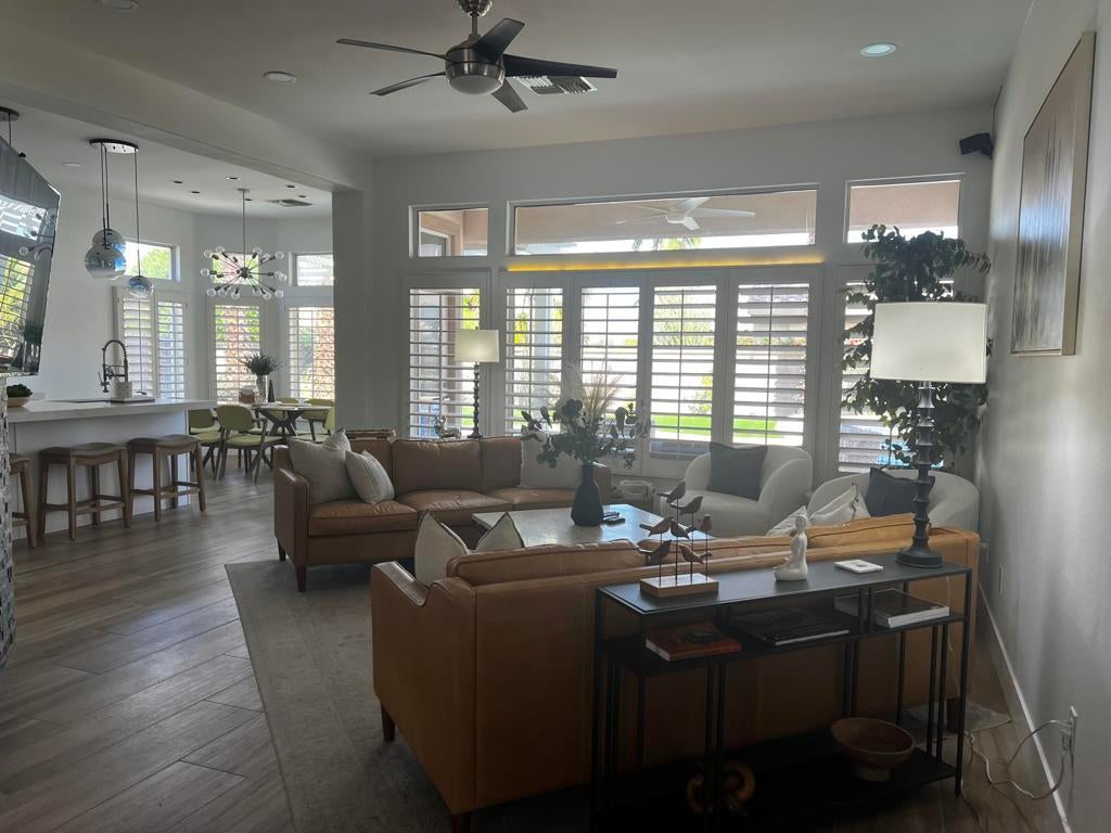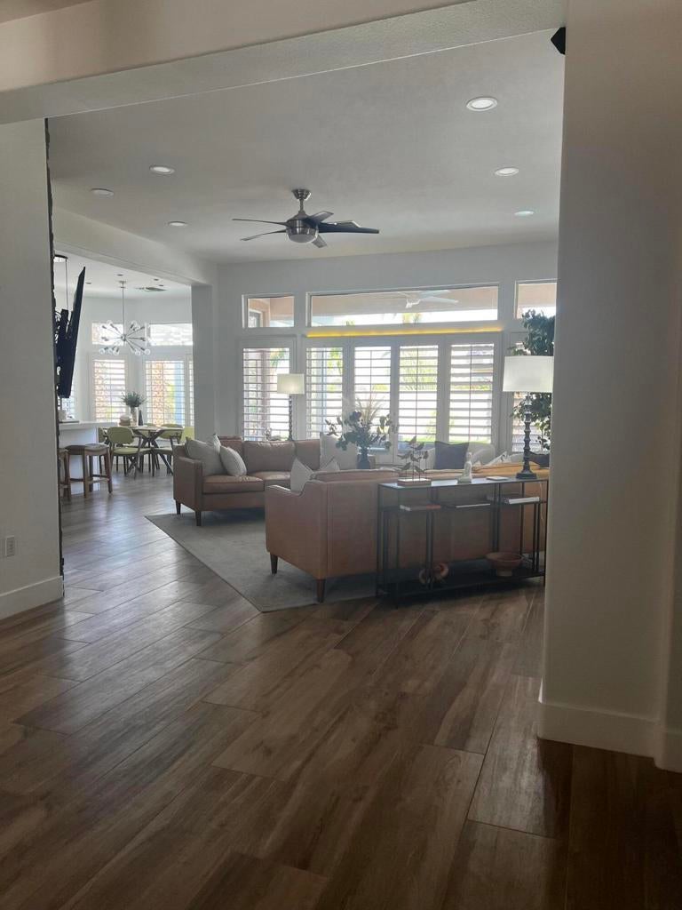 A fabulously remodeled Lennox model with wall removed between kitchen and living room. New flooring, surfaces, baseboards and upgraded walls. New paint. A great unit for the most discerning Snowbirds with private pool and spa on a corner lot. Only available Oct 2025 thru Jan 2026