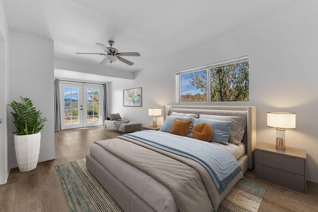 Discover the perfect blend of privacy, space, and desert beauty in this 5-bedroom, 2-bath ranch-style home, set on 2.5 acres of stunning land. Every room opens to the outdoors, creating seamless indoor-outdoor living and capturing the breathtaking panoramic views that surround the property.The single-story home features a spacious layout with a large kitchen at its heart, flowing into the open living and dining area. A charming fireplace stands front and center, adding warmth and character while expansive windows frame the incredible desert and mountain vistas.The master suite is a true retreat, complete with a cedar-lined closet and a luxurious clawfoot tub perfectly positioned to take in the sweeping views.A private well ensures self-sufficiency, while the long roundabout driveway provides both convenience and a grand arrival experience. Mature desert landscaping surrounds the home, offering natural beauty and peace.Whether you dream of a family ranch, a serene getaway, or a place to entertain under wide-open skies, this property delivers privacy, charm, and endless views. The property is reflected on title as a 1 bedroom, 1 bathroom residence. Additions and modifications appear to have been made by a previous owner. The Seller makes no representation or warranty as to the permits, approvals, or filings related to such additions or improvements. Permits and compliance status are unknown to the Seller