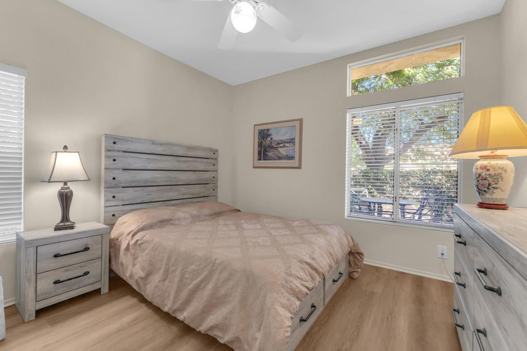 **$4,500 for seasonal rentals, $3,500 for annual***Beautifully furnished Baccarat model in 55+ Sun City Palm Desert Community - Move-In Ready Rental!Fully furnished and thoughtfully designed, this light-filled residence features soaring ceilings and a wall of windows that invite in the morning sun and provide a bright, cheerful atmosphere throughout the day.The open-concept layout seamlessly connects the kitchen, dining, and family room areas--perfect for both relaxed everyday living and entertaining guests. The kitchen offers generous counter space and overlooks a beautifully landscaped east-facing backyard, creating a tranquil view to start your day.The spacious primary suite is a true retreat, featuring a charming bay window, dual vanity, walk-in shower, and a soaking tub for ultimate relaxation. A second bedroom is located near a full guest bath, ideal for visitors or a home office setup.As a resident of Sun City Palm Desert, you'll enjoy access to an impressive array of resort-style amenities. The community features three expansive clubhouses with state-of-the-art fitness centers, indoor and outdoor pools, meeting spaces, and social event venues. For the active lifestyle, there are two championship golf courses, as well as tennis, pickleball, and bocce ball courts. Miles of scenic walking and biking trails wind through the beautifully landscaped grounds, and there's even a dog park for your furry companions. Over 70 clubs and social groups make it easy to meet new friends and explore new interests, while on-site dining options, including restaurants and a coffee shop, offer convenient and delicious meals just steps from home.