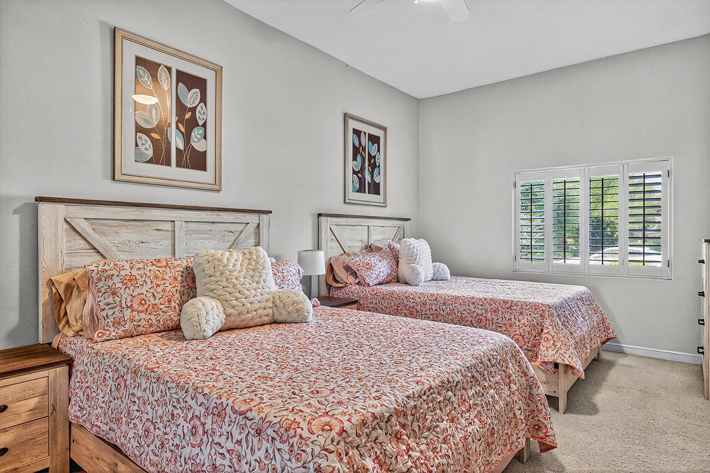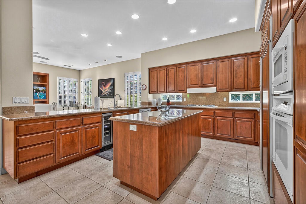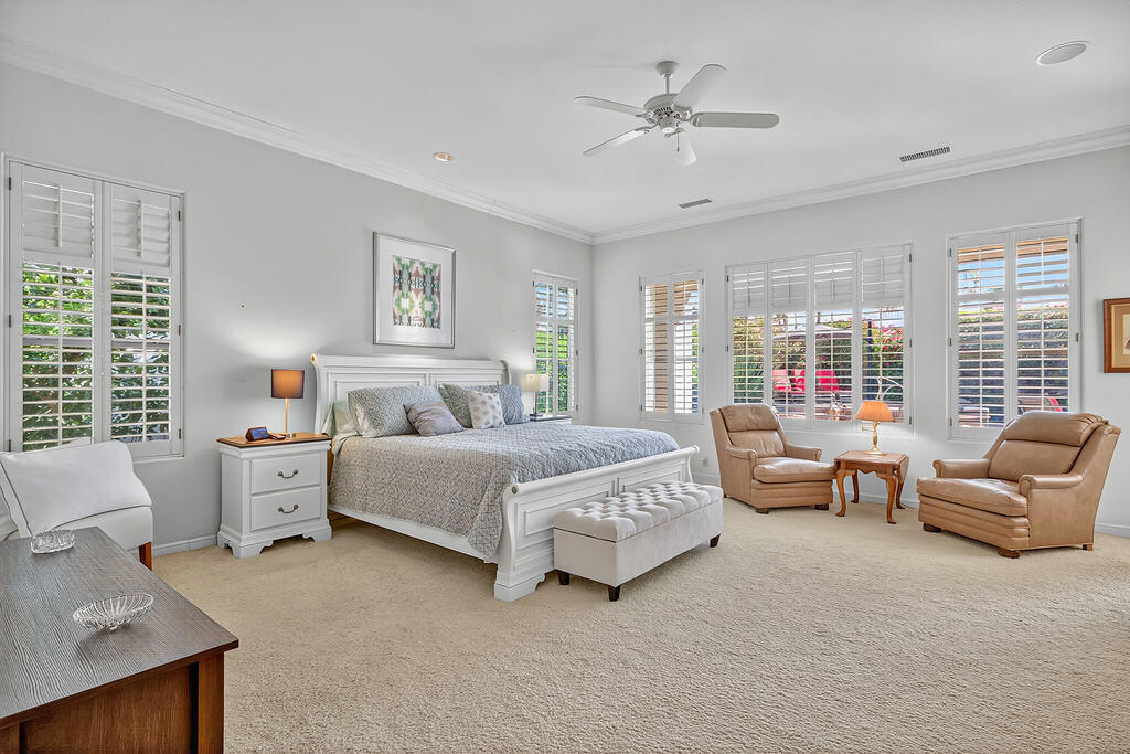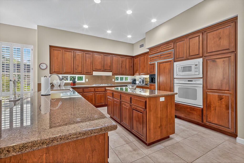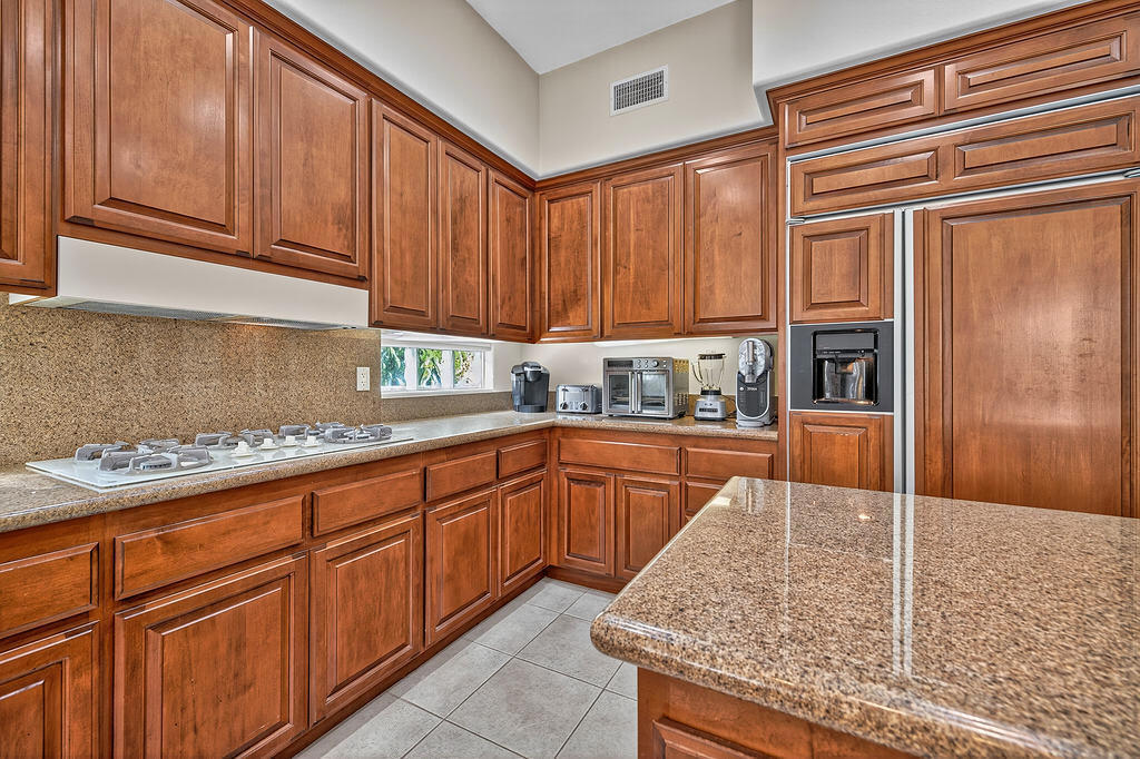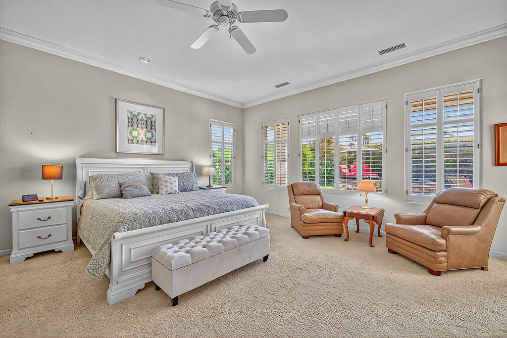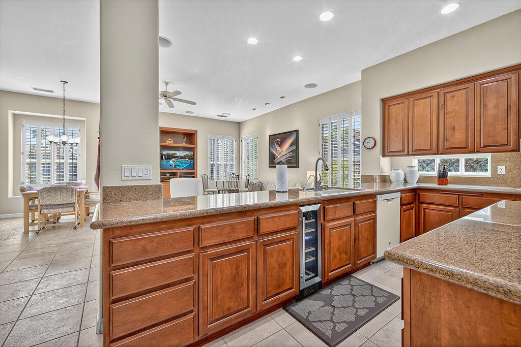 Welcome to 4 Milano Circle, a beautifully appointed 4-bedroom, 2.5-bath residence offering the perfect blend of luxury, comfort, and convenience in the heart of Palm Desert. This spacious home features multiple living areas, including a formal living room with a fireplace and big-screen TV, a cozy family room with built-ins and an additional fireplace, plus an elegant dining area illuminated by natural light. The gourmet kitchen is a chef's delight with granite counters, rich cabinetry, built-in appliances, a center island, and every amenity for preparing meals and entertaining guests. Each bedroom is comfortably furnished with quality linens and its own TV, providing a true turnkey experience.Step outside to a resort-style backyard designed for relaxation and entertaining. Enjoy a lagoon-style pool and spa with dramatic rock waterfalls, surrounded by lush landscaping for total privacy. Multiple seating areas, a built-in BBQ, a covered patio with ceiling fans, and a third fireplace make this the ideal retreat for sunny days and cool desert evenings.Located minutes from El Paseo's world-class shopping and dining, Acrisure Arena, McCallum Theatre, Indian Wells Tennis Garden, and family entertainment at Dave & Buster's, this home offers easy access to the best of the Coachella Valley. Flexible lease terms available. High-season tenants welcome. Whether you're here for golf, tennis, festivals, or simply to unwind, 4 Milano Circle delivers the ultimate desert lifestyle.
