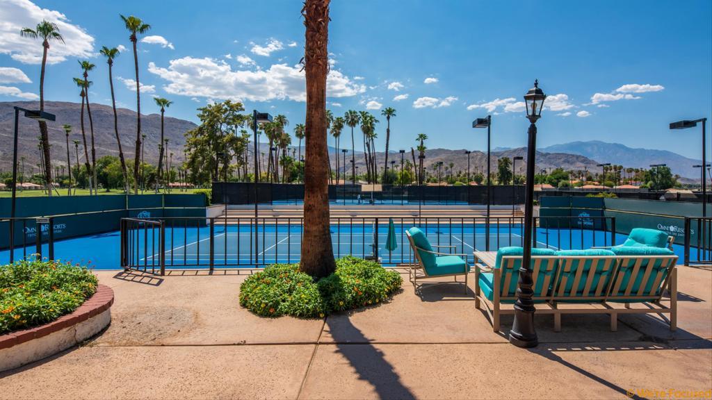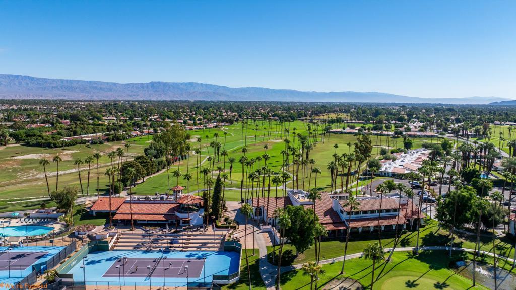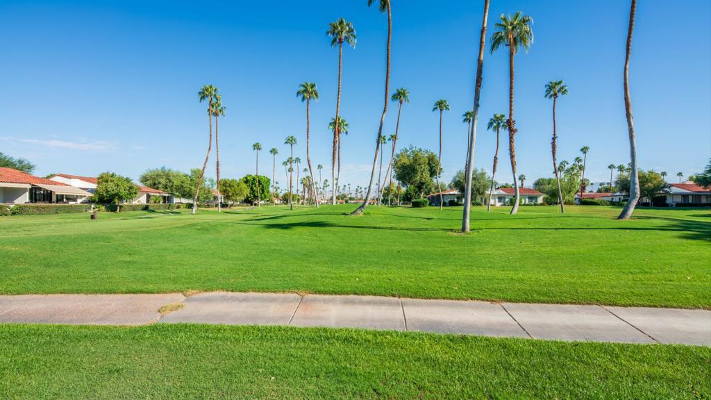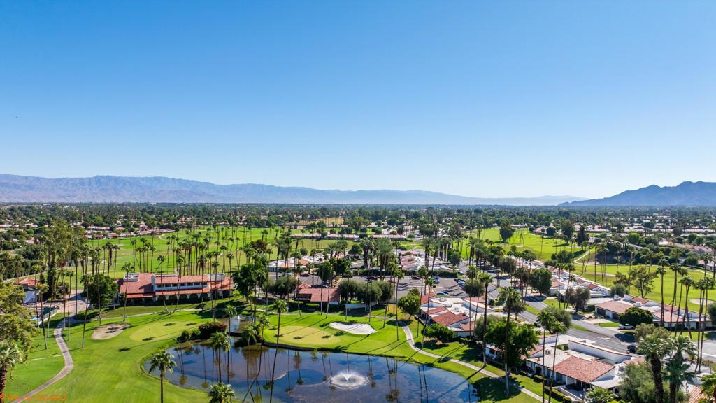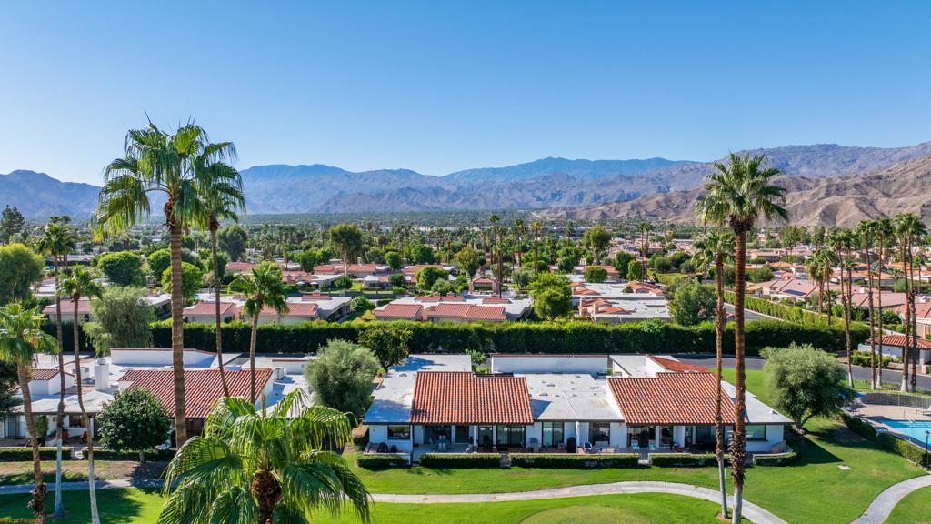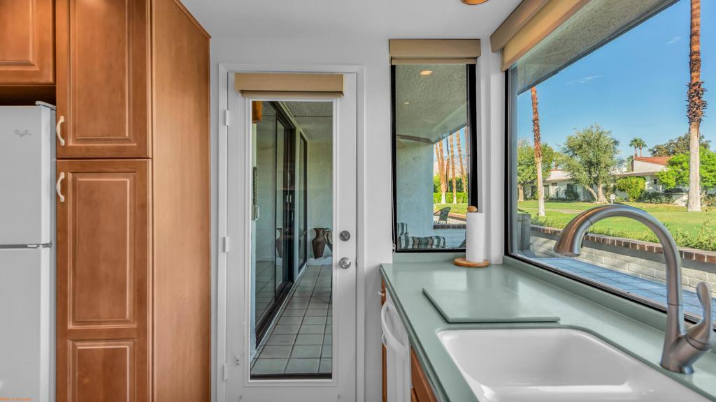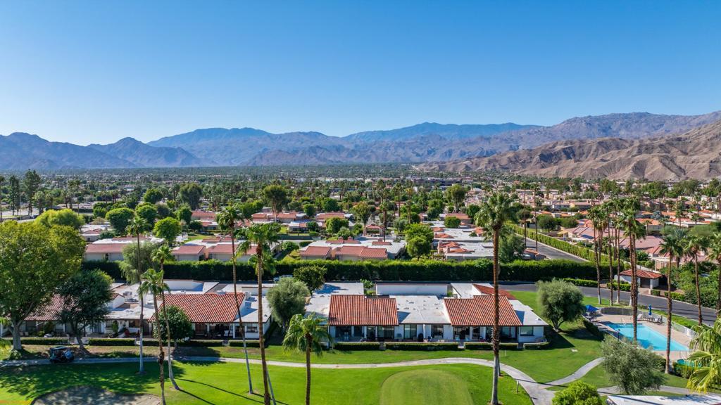 PRICE REDUCTION! MOTIVATED SELLER! Some of the BEST VIEWS! Mountains north and west plus long fairway greens. Move-in ready, furnished. Freshly Painted. Come and enjoy the luxury Rancho Mirage lifestyle. The entry ushers you into the open concept living and dining area. The wall of windows draws the eye to the spectacular greens and mountains beyond, and you imagine yourself enjoying that vista everyday. The kitchen has beautiful wood KraftMaid cabinetry with pullouts in the pantry. All appliances are included for your convenience. Take your meal outside or start up the BBQ from the convenient door to your private patio. The view from the kitchen windows is magnetic and you won't mind kitchen duty in this picturesque setting. The cute breakfast bar is the perfect way to start your day with an adorable two seat counter. The dining area easily seats six for guests and family to join in. Just off the entry and living room is the multi-purpose third bedroom - used currently as a den with built -in wet bar. This sizeable room has tons of built-ins for storage, display shelves, large counter, sink and mini-fridge so you are ready to serve up the drinks after golf. Two large sky-lights add bright daylight to the space. And easy to make a guest bedroom with the closeable shutters and pocket door. Guest bedroom two is spacious and inviting, with guest bath right nearby that includes a tile shower over tub. The primary suite is a calm and serene setting with plenty of closet space and room for dressers. The ensuite bath features double sinks, Kraftmaid cabinets, make-up vanity area, and a convenient walk-in shower with shelves. The laundry room is spacious with cabinets. The 2 car garage has an epoxy floor, storage cabinets. Rancho Las Palmas Country Club is a complete resort adventure with fitness room, over 20 pools/spas, 27-holes of golf, tennis, pickleball, proshops, snack bar, full-service bar. The closest pool is a very short distance away, three doors down! HOA fees cover cable TV, internet, trash, landscaping, exterior painting, roof, security and more. Omni Hotel is right next door with Owners Discounts at food and beverage outlets, and there is also a full-service Spa! Take your golf cart across the street to The River for dining and retail excellence. Central location near to Eisenhower Medical Center, Airport, Dining, Activities like the Tram, Acrisure Arena, El Paseo shopping, Whole Foods.