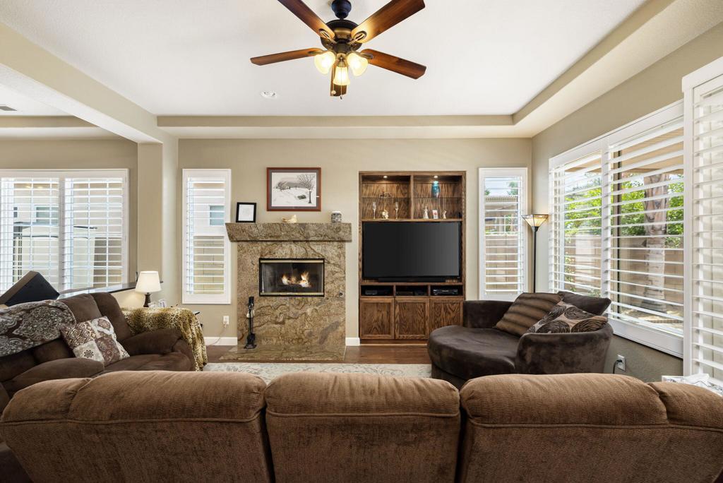 Welcome to Esplanade - Where Location, Lifestyle, and Luxury Meet!This beautifully maintained 4-bedroom, 2-bathroom home (or 3-bed plus den) offers 2,173 sq. ft. of comfortable living on a prime interior lot in the sought-after gated community of Esplanade. Enjoy your own private retreat with a fabulous lap pool and spa, no homes directly behind, and exceptional curb appeal. The gourmet kitchen features granite countertops and overlooks the spacious great room, with fireplace, ideal for entertaining. Granite vanities elevate both bathrooms, while rich hardwood flooring adds warmth throughout. The primary suite boasts patio access, a large walk-in closet, and a spa-like bathroom with dual sinks. Additional highlights include a newer A/C unit, hot water heater, and pool pump, plantation shutters throughout, alumawood awning over the patio, plus a spacious laundry room with ample storage. Just minutes from top dining, shopping, and entertainment, this home truly has it all!